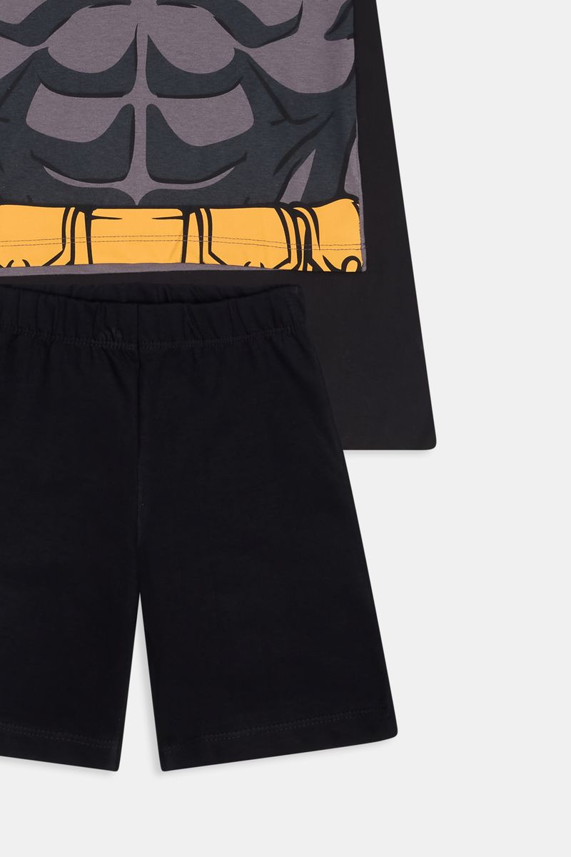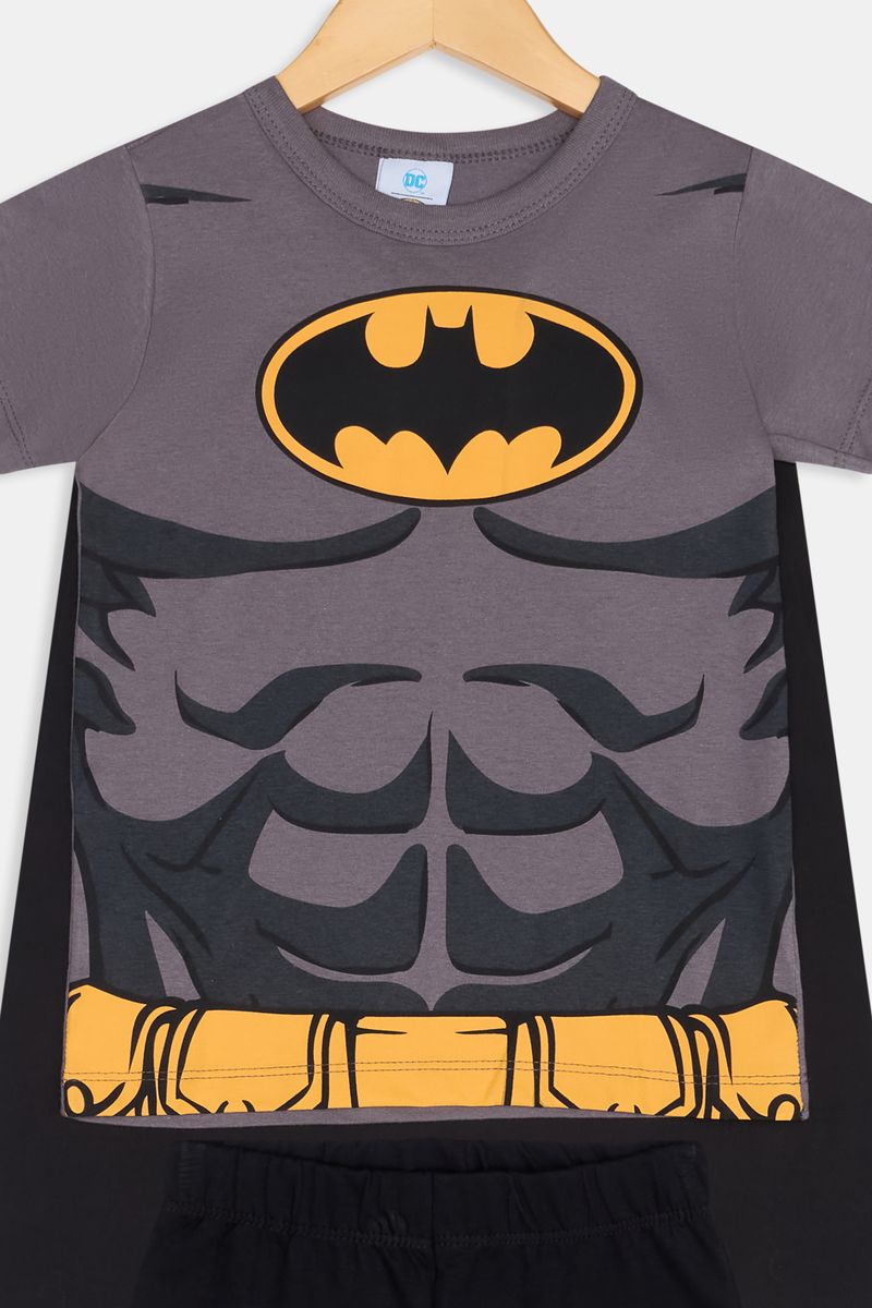 O Conjunto Fantasia Batman Caedu, em 100% algodão de meia malha, oferece conforto e diversão. Com camiseta estampada do Batman e capa anexa, é a roupa infantil perfeita para o dia a dia do seu pequeno herói.