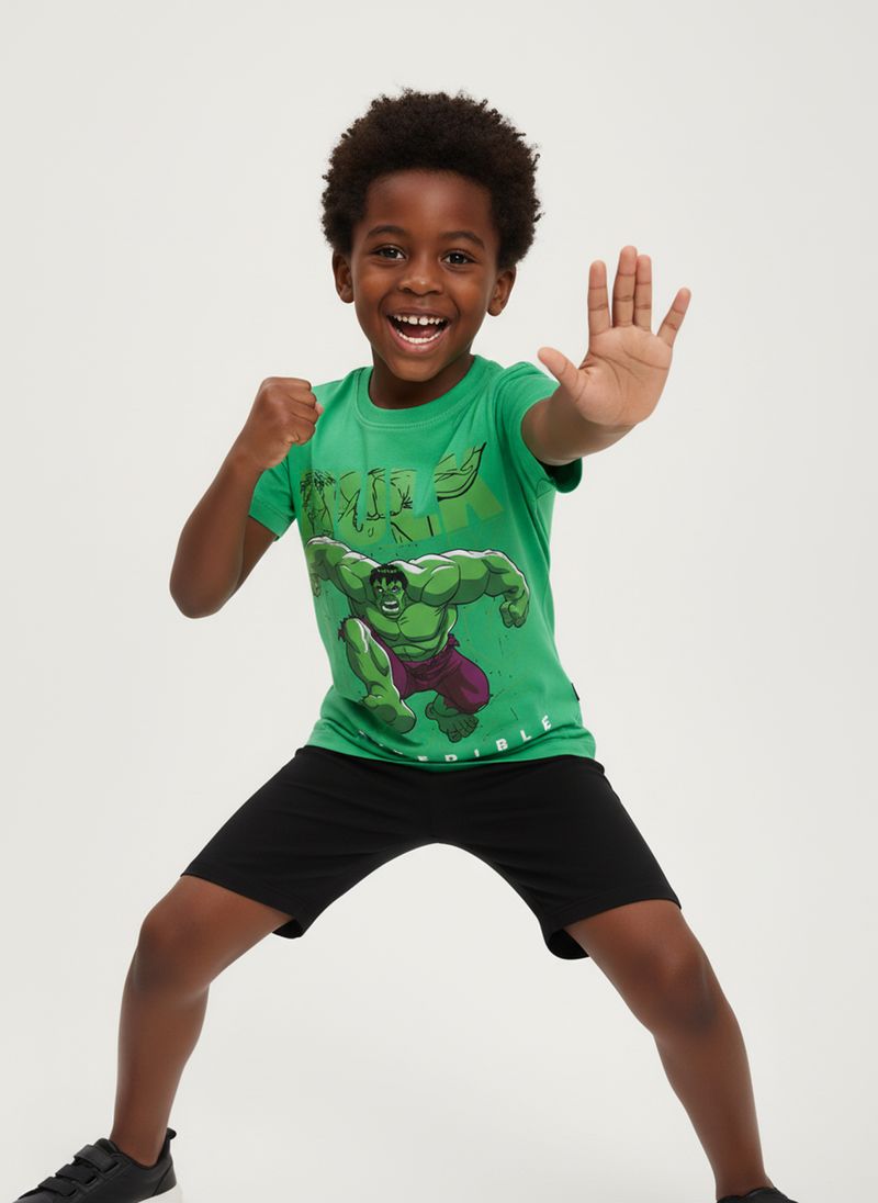 Prepare sua pequena heroína para aventuras com o Conjunto Infantil Hulk Caedu! Confeccionado em 100% algodão e meia malha, oferece máximo conforto e liberdade. A blusa verde vibrante com estampa do Hulk e o shorts preto garantem um visual estiloso e divertido para o dia a dia. Perfeito para a moda infantil Caedu.