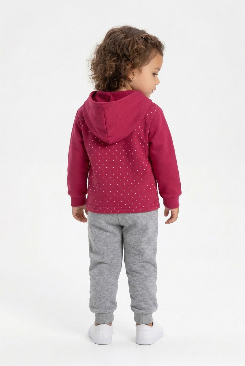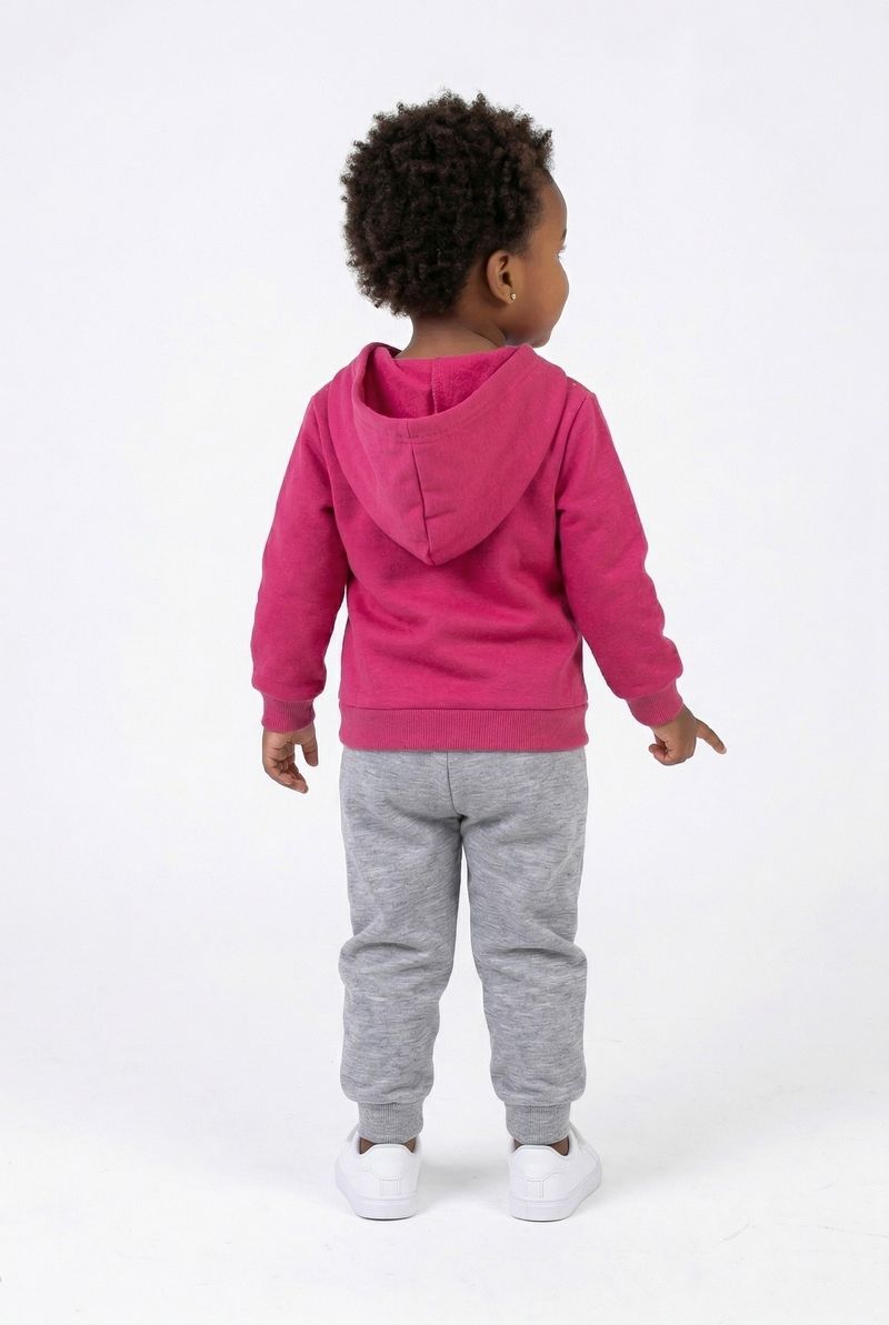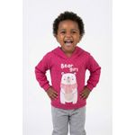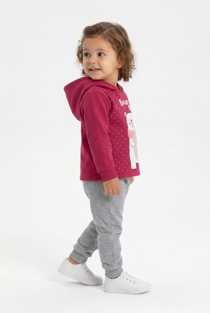 O Conjunto Infantil Caedu Bear Girl oferece conforto e estilo para as pequenas. Com blusa de capuz rosa em moletom com felpa e estampa de urso polar, e calça moletom cinza com punhos canelados, é a escolha perfeita para o dia a dia. Uma roupa infantil que une diversão e bem-estar.