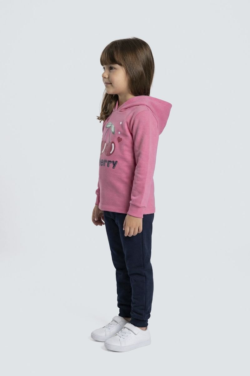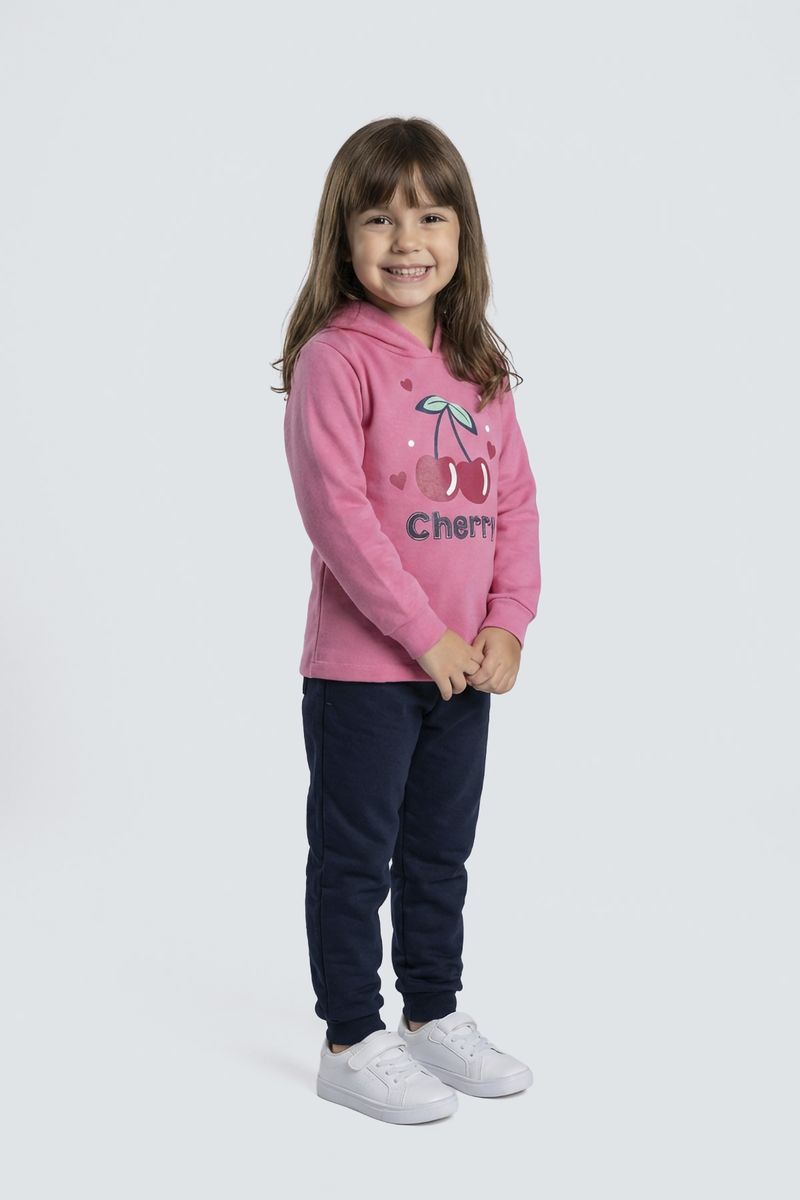 Prepare sua pequena para um dia cheio de alegria com o Conjunto Infantil Caedu Moletom Cereja Rosa. Confortável e estiloso, possui blusa rosa com capuz e estampa de cerejas, e calça marinho. Perfeito para brincar e se divertir.
