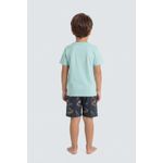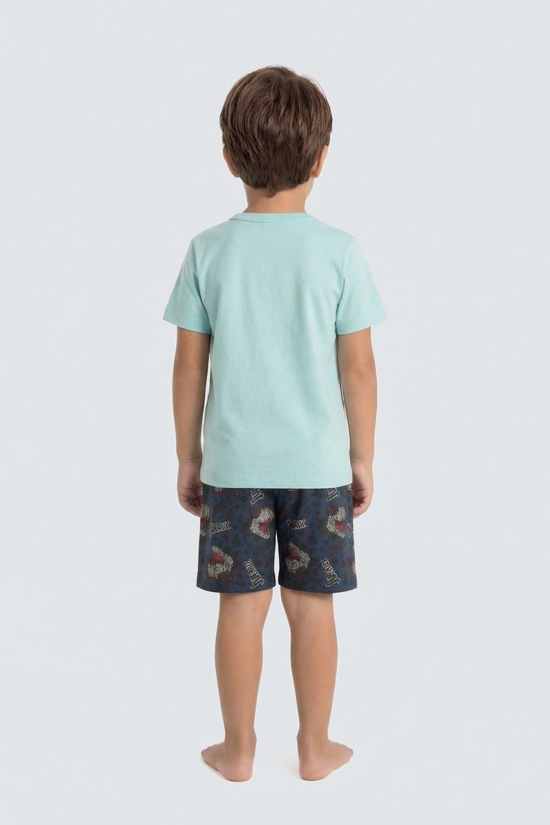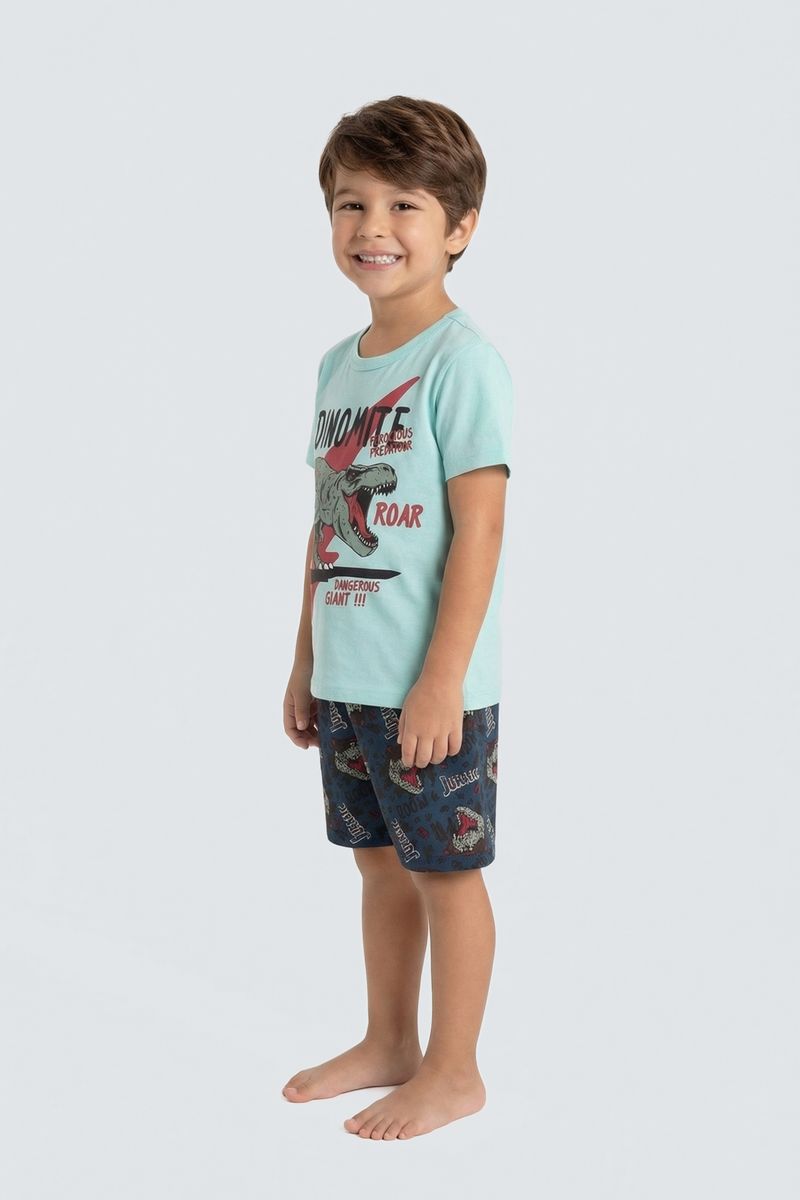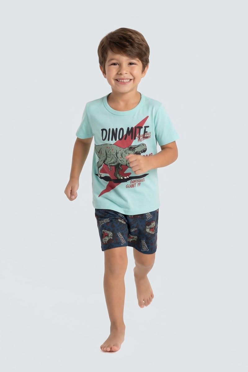 O Conjunto Infantil Dinomite T-Rex Caedu, com blusa 100% algodão em Verde Água (tom Pistache) e shorts estampado Jurassic, oferece conforto e moda. Ideal para pequenos aventureiros, este conjunto é pura diversão e estilo.