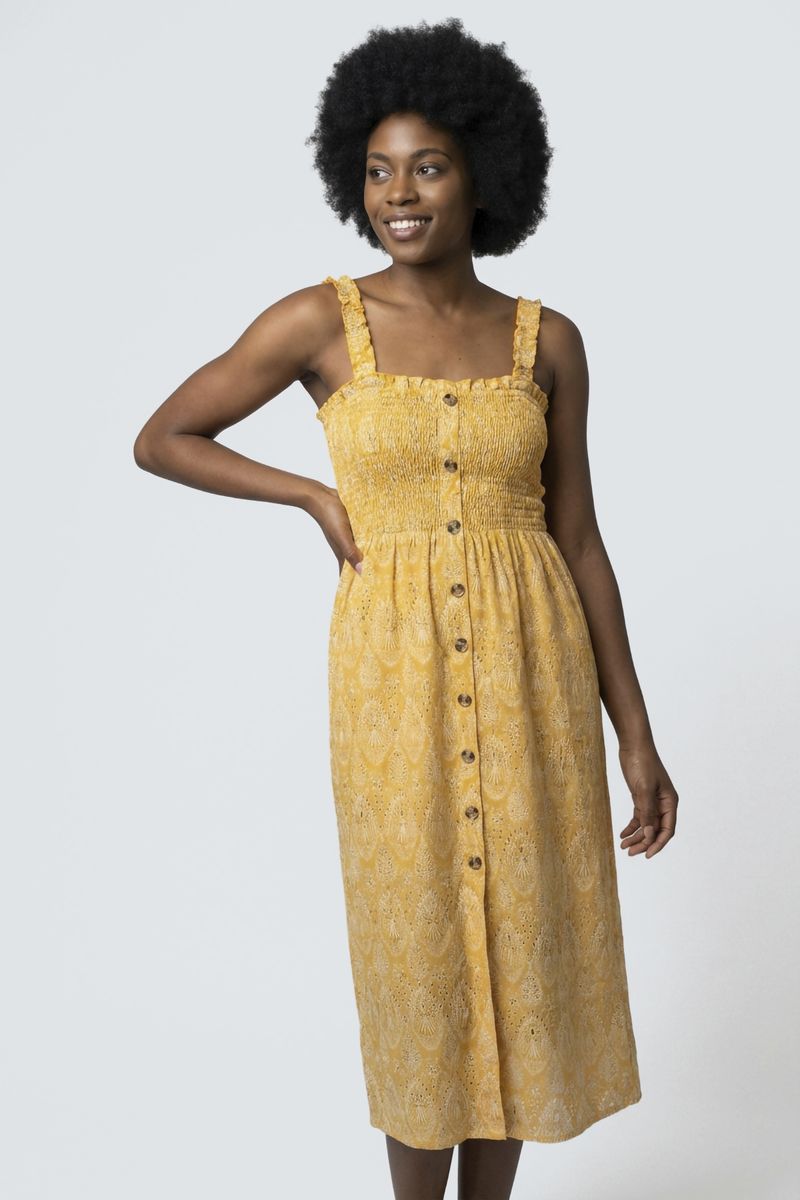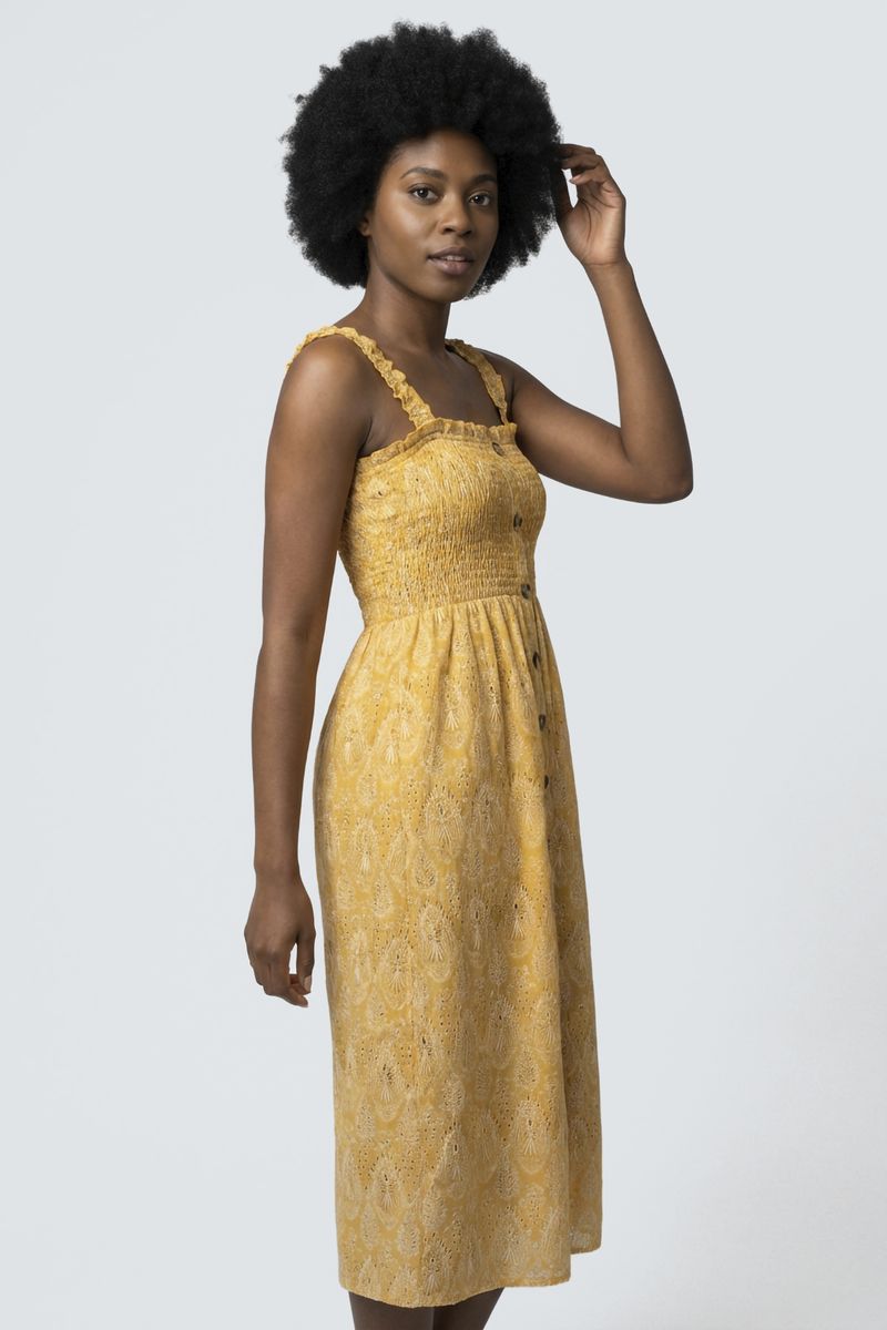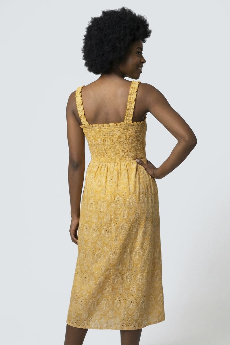 Desperte sua essência com o Vestido Midi Amarelo Caedu. Sua estampa paisley vazada e o busto franzido oferecem um toque de elegância e conforto. Perfeito para quem busca moda e versatilidade em uma única roupa, destacando-se com charme e leveza.