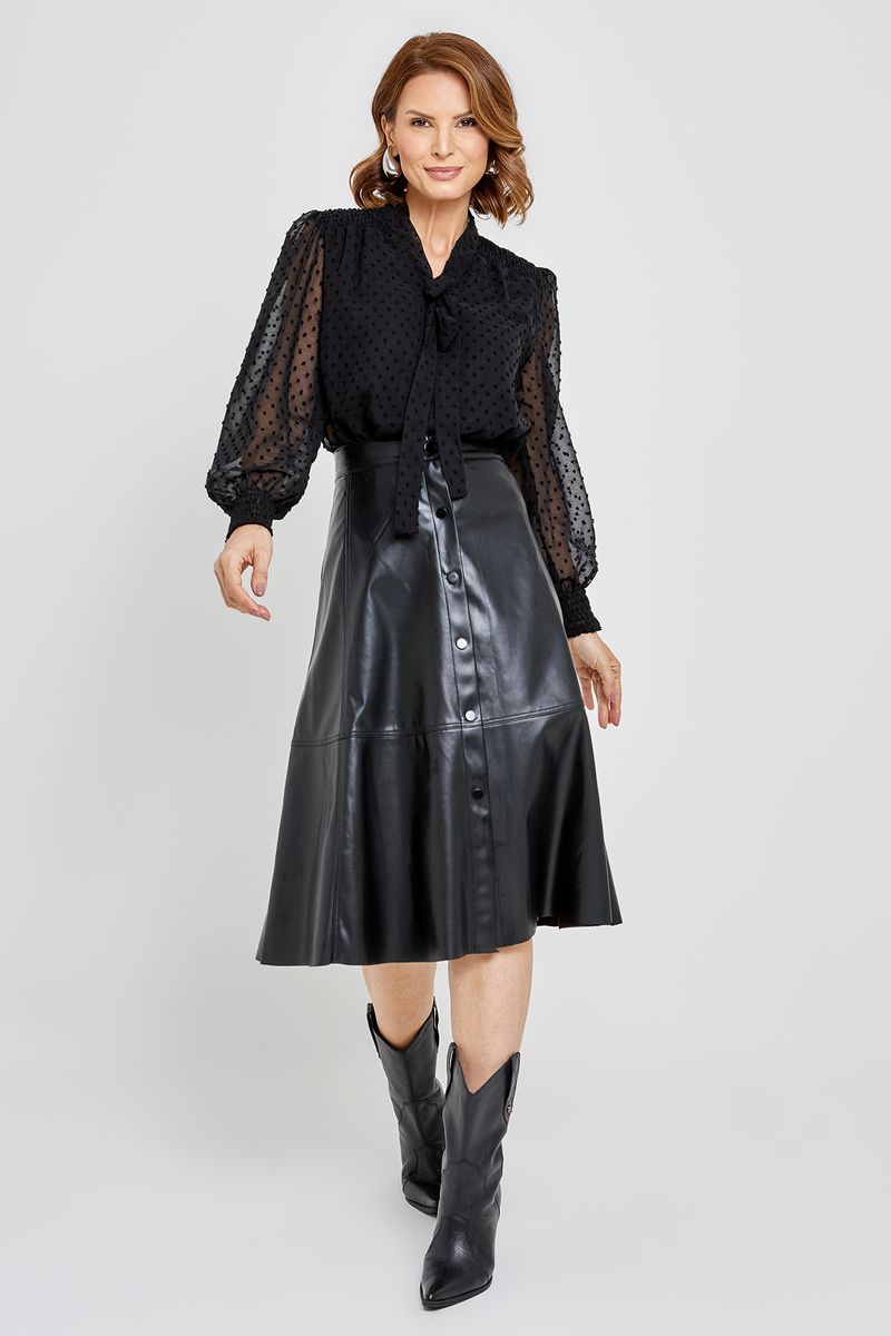 Camisa Feminina Caedu Plumetti Preta Elegante
