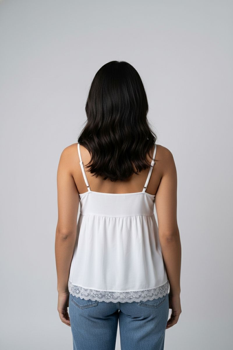 Combine sua blusa regata com shorts jeans para um visual despojado, ou com uma saia midi para um toque romântico. Para um look mais elaborado, adicione um blazer leve e sandálias de salto. Complete com acessórios delicados para realçar a beleza da renda.