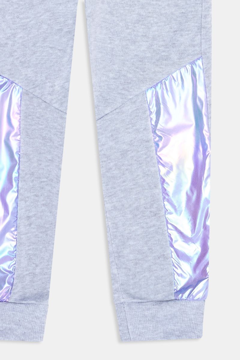 Detalhes: Recortes iridescentes, cós elástico com cordão ajustável, punhos canelados