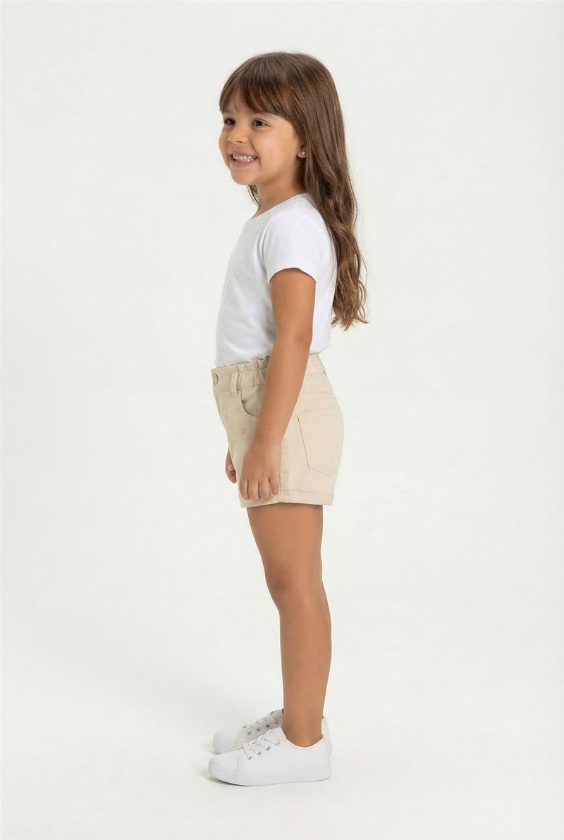 O Shorts Infantil Caedu, em sarja bege claro, é a peça ideal para um visual moderno. Com 95% algodão e 5% elastano, garante conforto e liberdade. O bordado de sorvetes e o tom terroso adicionam um toque de moda e diversão.