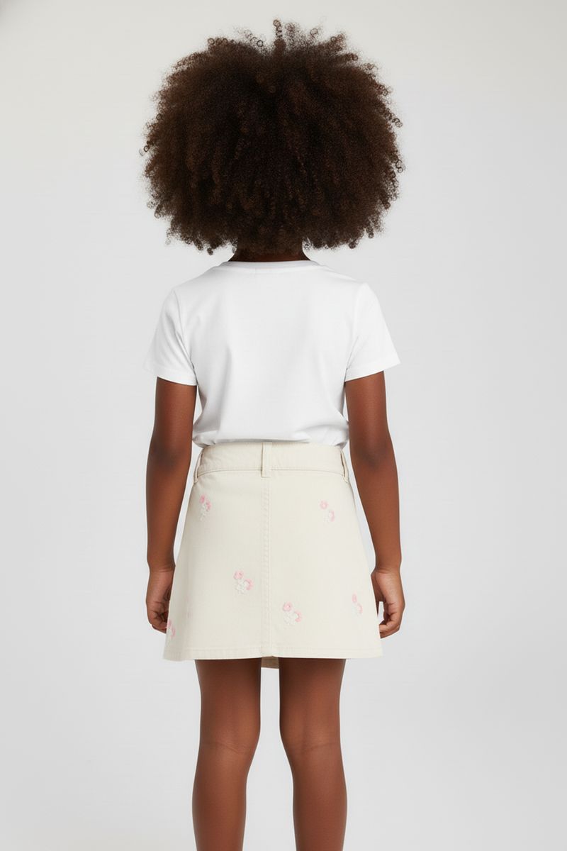 Descubra o encanto do Shorts Saia Infantil de Sarja Bege Claro Caedu, perfeito para as pequenas fashionistas. Confeccionado em 95% algodão e 5% elastano, oferece conforto e liberdade. O delicado bordado floral adiciona um toque de charme único, ideal para criar looks cheios de estilo e leveza.
