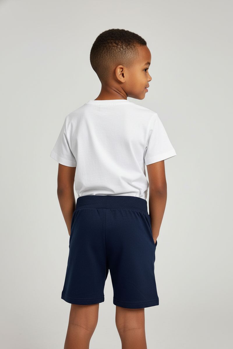 Combine a bermuda com uma camiseta branca básica para um look clássico e confortável, ou ouse com camisetas coloridas para um toque divertido. Complete o visual com tênis esportivos para brincadeiras ou sandálias para um passeio mais leve. Uma jaqueta leve pode complementar o estilo.