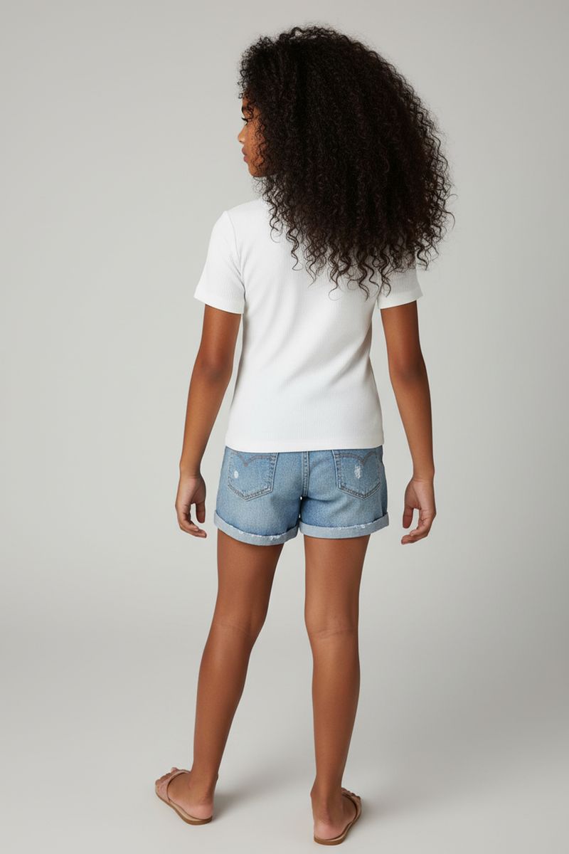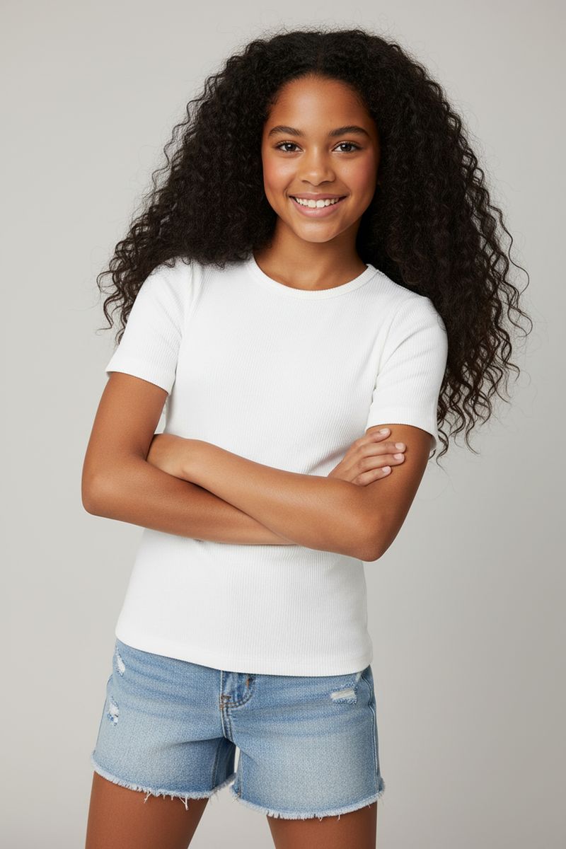 A Blusa Branca Canelada Manga Curta com Barra Babado Caedu é perfeita para as meninas que amam estilo e conforto. Feita em malha canelada de poliéster e elastano, oferece toque suave e liberdade de movimento. Seu design com barra babado adiciona um charme único, ideal para looks cheios de personalidade.