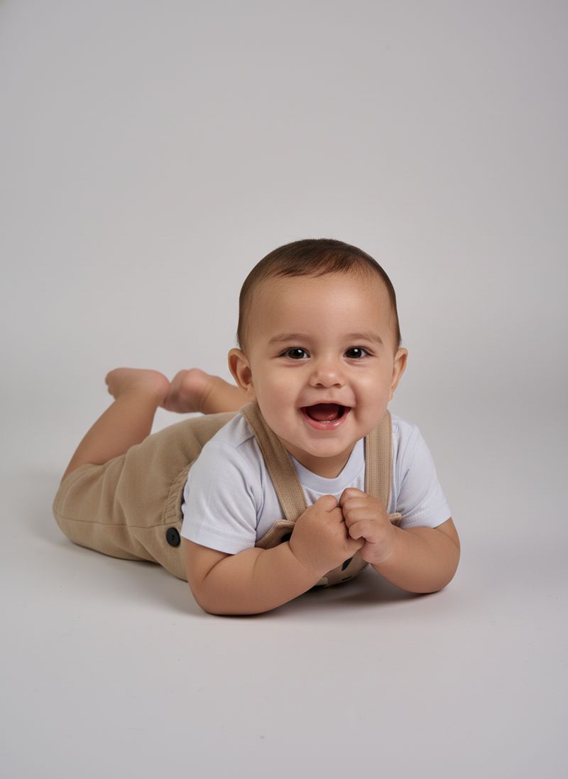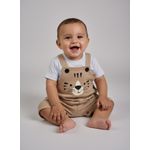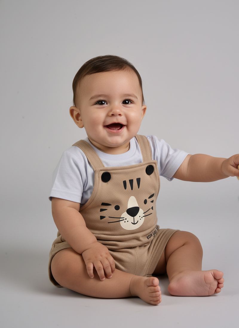 A Jardineira Bebê Tigre Fofo Bege Claro Caedu é a roupa infantil ideal. Confeccionada em 100% algodão e meia malha, oferece conforto e liberdade. Seu design com estampa de tigre fofo e cor bege claro garante um visual adorável e estilo para as aventuras do seu pequeno.