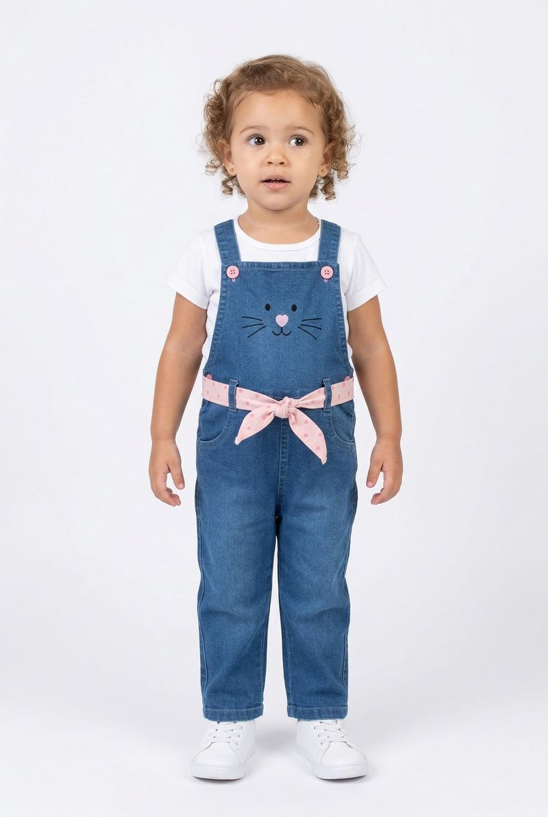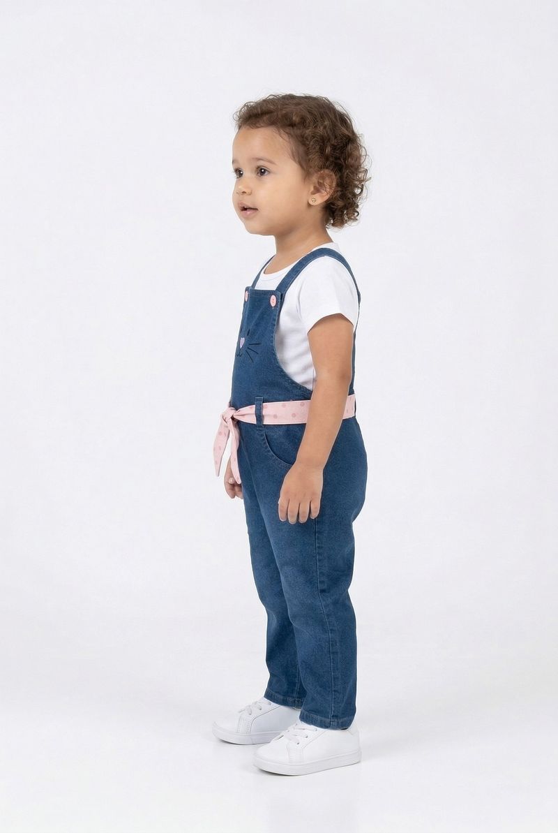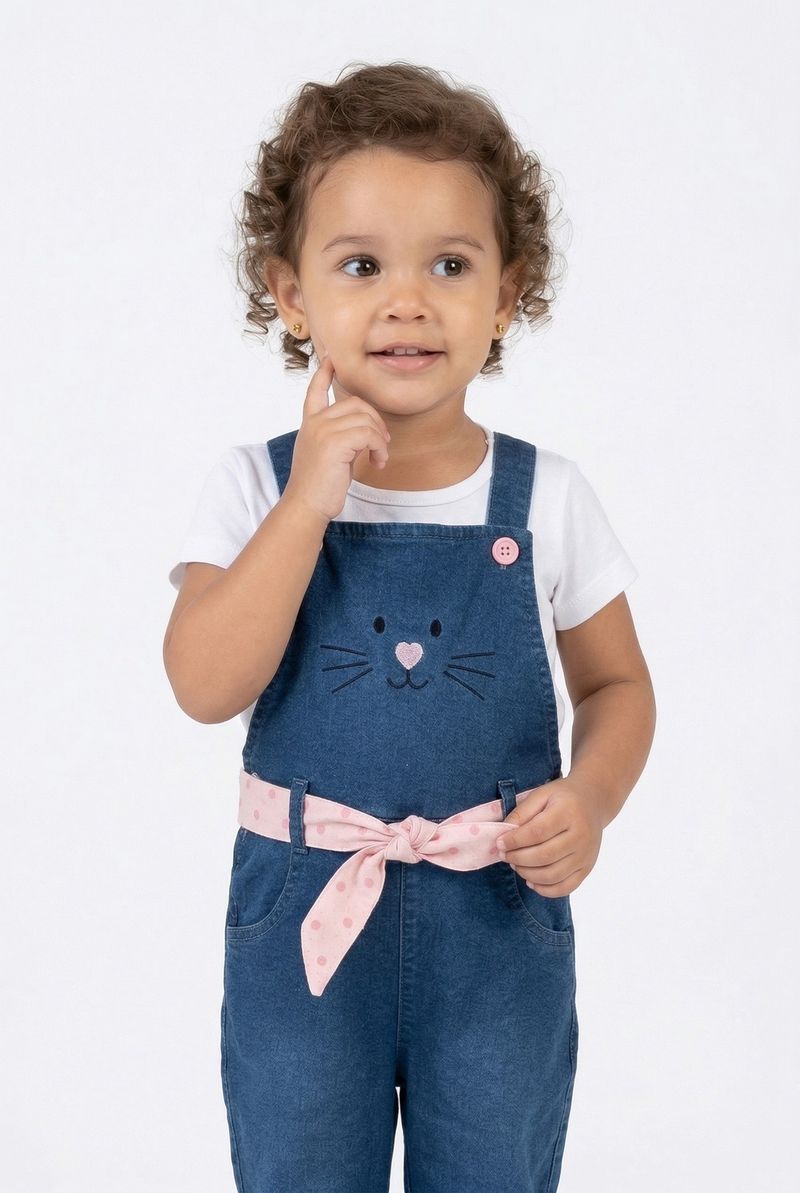 VestuárioInfantilMacacões e JardineirasJard inf1/3nas jeans longa cinto jeans azul claro