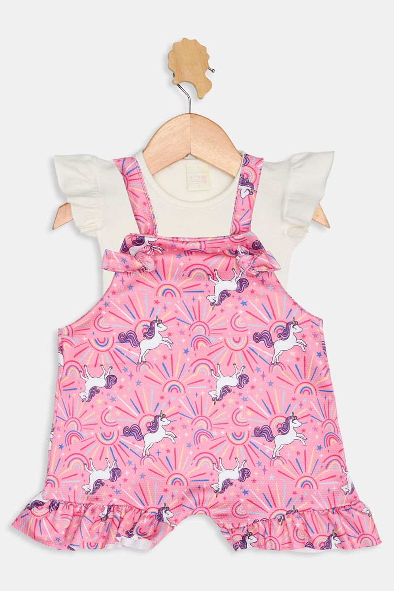 Encante-se com a Jardineira Bebê Unicórnio Rosa Caedu! Esta roupa vibrante, com estampa mágica de unicórnios e arco-íris, oferece conforto e estilo para sua pequena. Perfeita para momentos de diversão, é uma peça chave da moda infantil que sua filha vai amar.