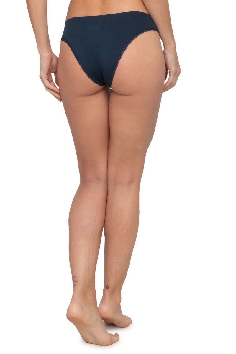 Kit 2 Calcinhas Biquíni com Elástico e Renda Lisas Rosa e Azul Marinho