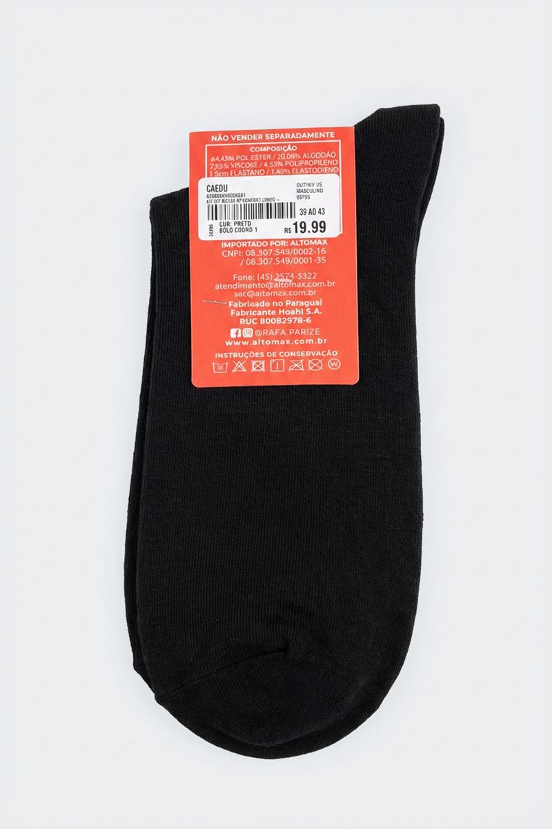 Kit 3x1 meias rp confort longo - preto 3 preto
