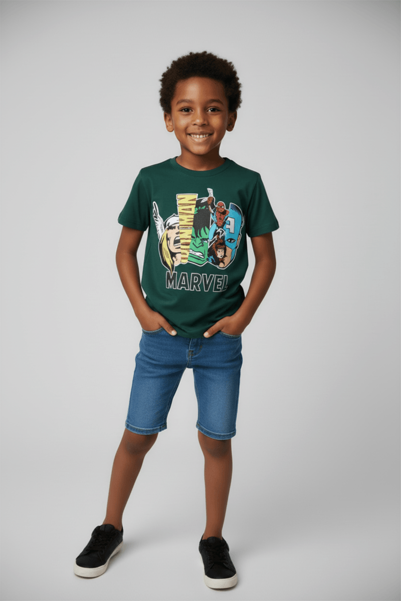 Combine a Camiseta Infantil Caedu Marvel com shorts jeans para um visual despojado e confortável. Para dias mais frescos, use com calças de moletom e uma jaqueta leve. Nos pés, tênis casuais complementam o look, garantindo praticidade e muito estilo para os pequenos heróis em suas aventuras diárias.