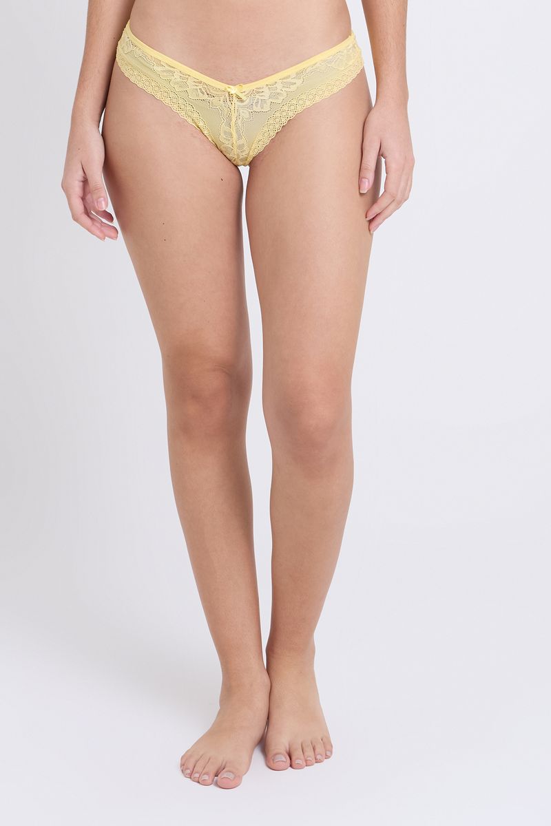 Sinta a leveza da Calcinha Fio Dental Amarelo Dindin de Renda com Laço Caedu. Confeccionada em microfibra e renda amarela pastel, esta peça de moda íntima oferece um design delicado com detalhes florais e um charmoso laço. Perfeita para sua coleção de roupas.