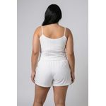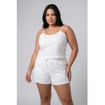 Modelagem: Blusa com alças finas, shorts com cós elástico
