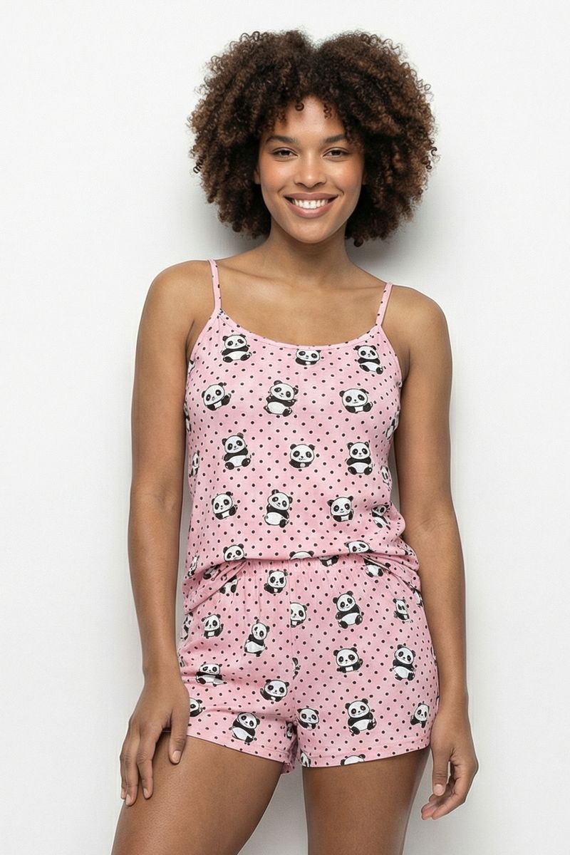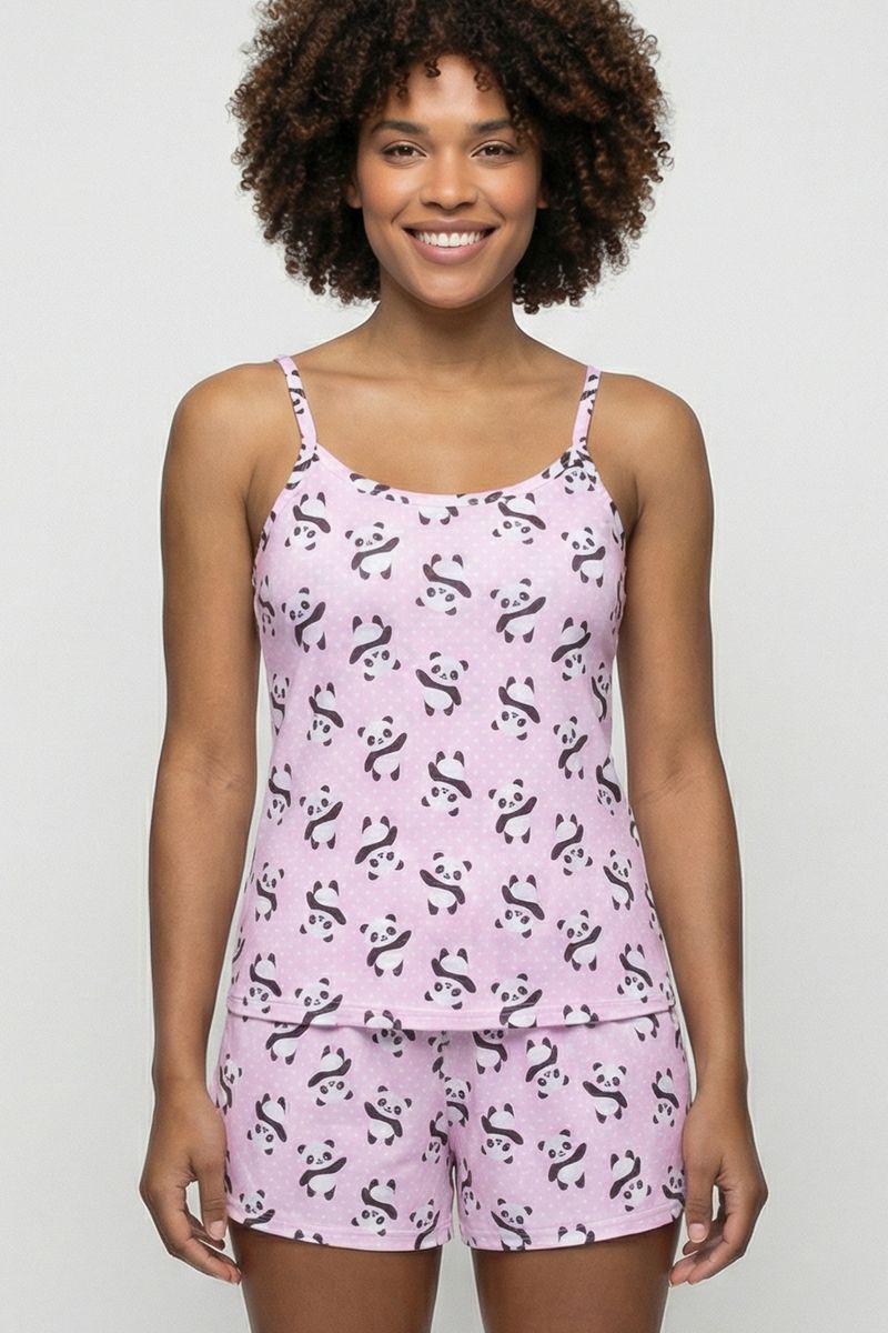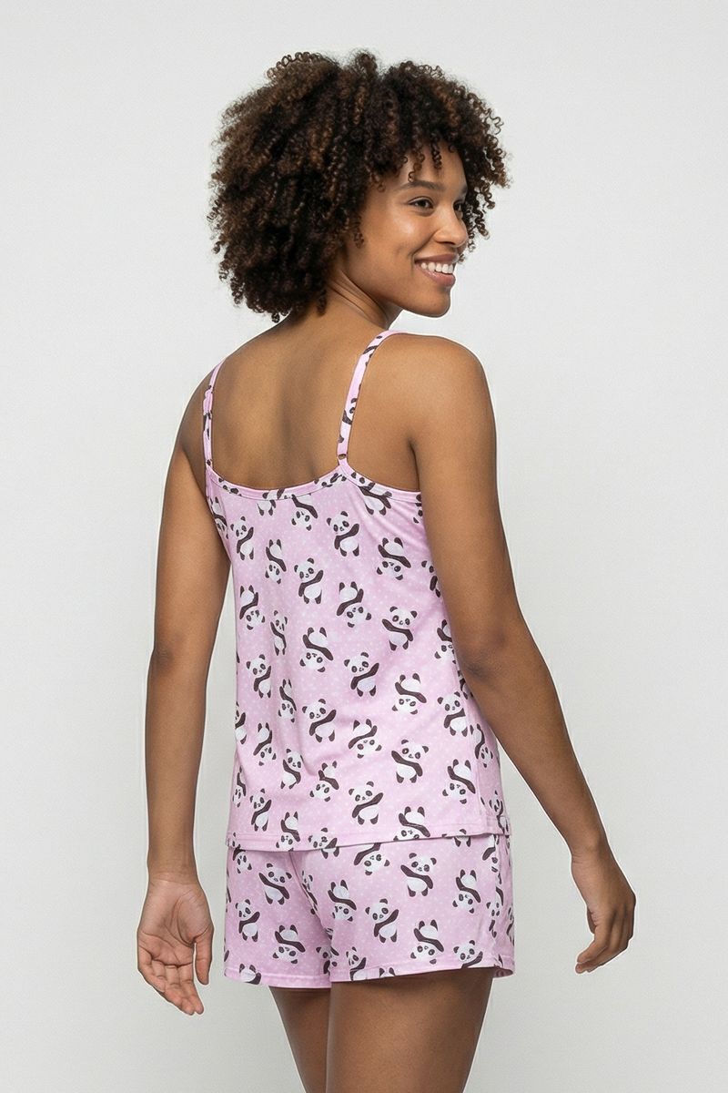 Desfrute de noites tranquilas com o Conjunto Pijama Feminino Caedu. Confeccionado em liganete, oferece toque suave e caimento perfeito. A estampa divertida de panda adiciona charme à sua moda íntima, garantindo conforto e um visual encantador.