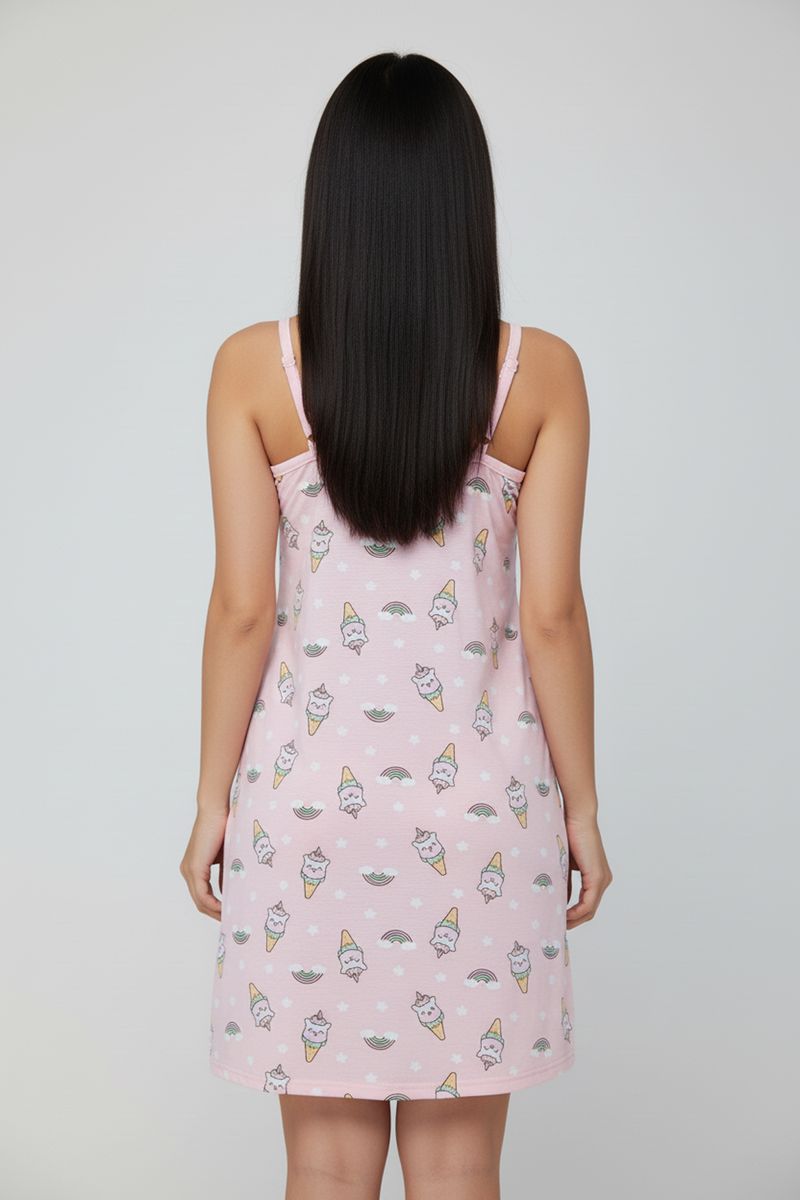 Desperte a doçura em suas noites com a Camisola Liganete Rosa Delicada Caedu. Confeccionada em liganete, oferece um toque suave e caimento confortável. Sua estampa divertida de sorvetes e nuvens, junto à renda no decote, garante um visual encantador e cheio de estilo para seus momentos de descanso.