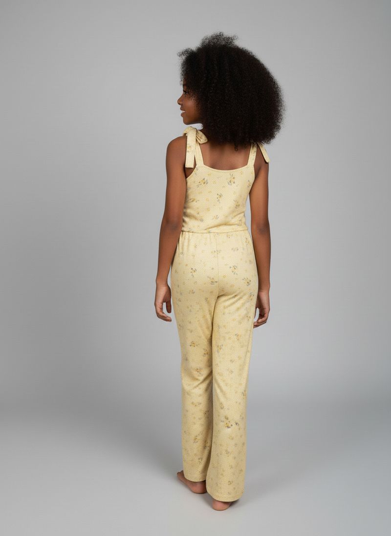Desperte o encanto com o Macacão Infantil Caedu Amarelo Sol Floral! Com estampa floral delicada e brilho sutil de Lurex, esta peça 100% poliéster oferece conforto e estilo. As alças de laço e o decote quadrado adicionam um toque charmoso, perfeito para as pequenas fashionistas.
