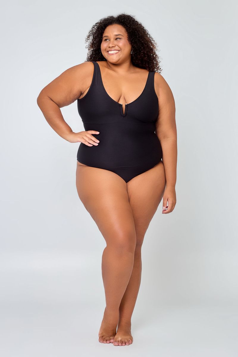 Maiô feminino Feito Pra Mim tropical verde e coral, modelo plus size, perfeito para quem ama um estilo vibrante e confortável.