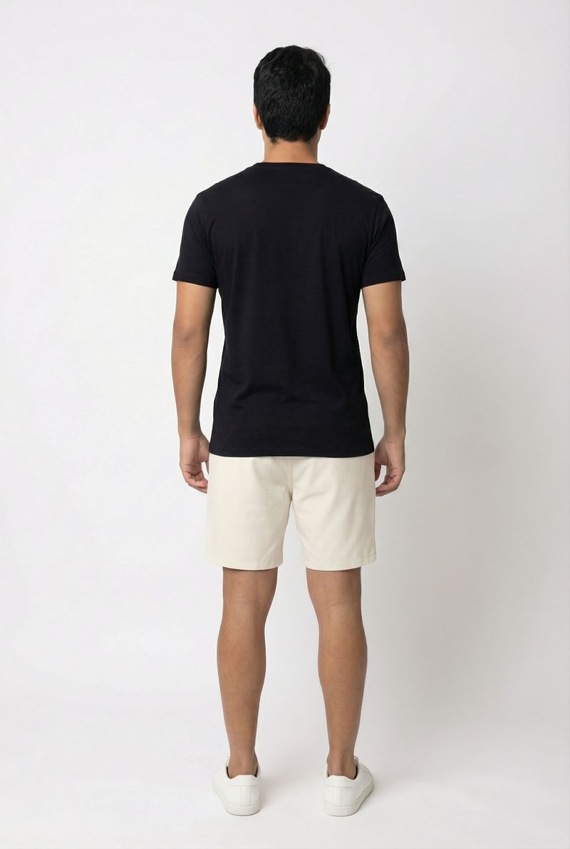 Combine sua bermuda bege claro com uma camiseta básica preta ou branca para um visual casual e moderno. Adicione um par de tênis brancos para um toque despojado. Para dias mais frescos, uma camisa jeans aberta ou uma jaqueta leve complementam o look com estilo, ideal para diversas ocasiões do dia a dia.