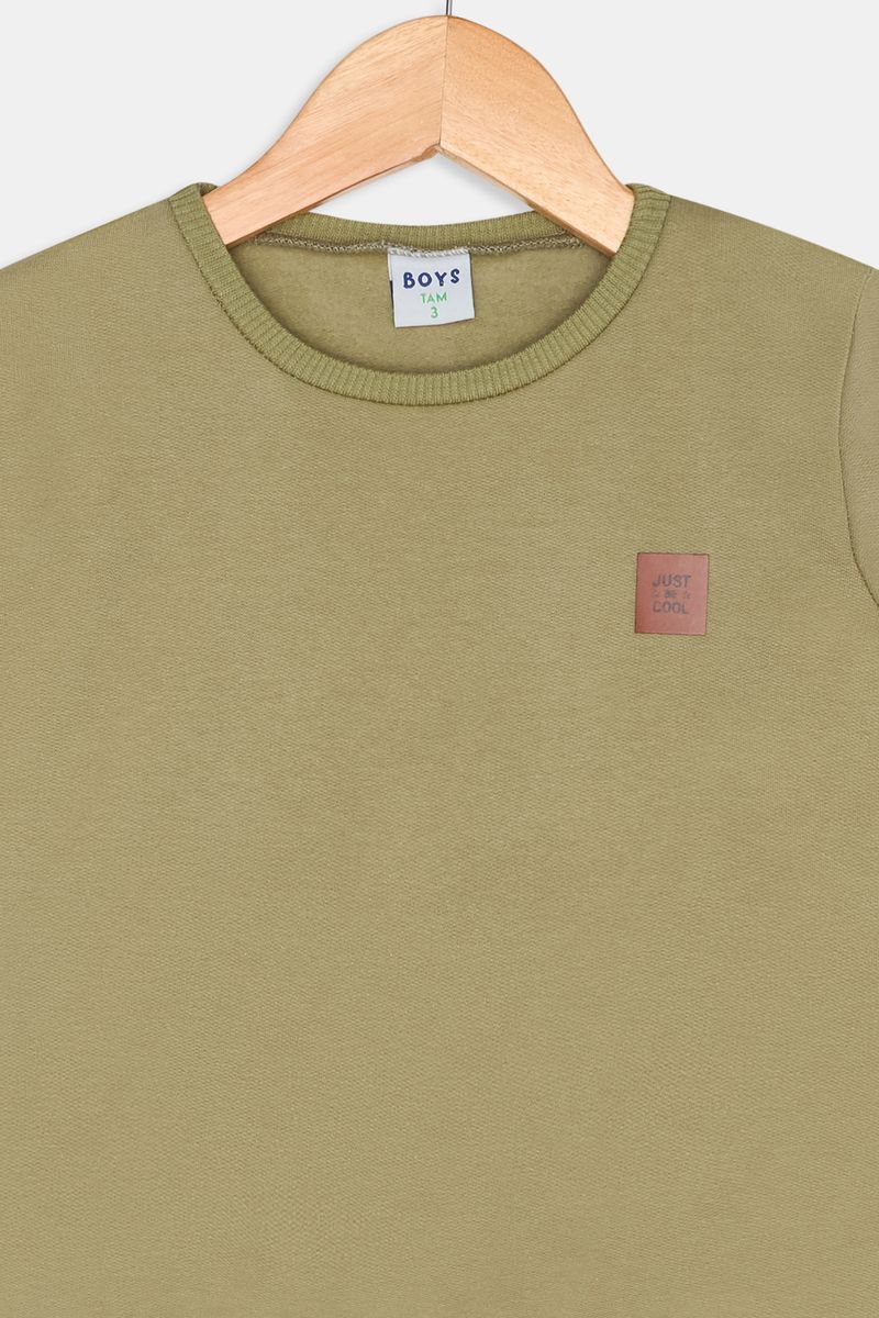 Vista seu pequeno com o Moletom Infantil Caedu, a escolha perfeita para conforto e estilo. Com seu design verde oliva e o patch 'Just Be Cool', ele garante um visual moderno. Feito em moletom com felpa, oferece maciez e durabilidade, ideal para o dia a dia. Encontre a moda Caedu com melhor preço para seu filho!