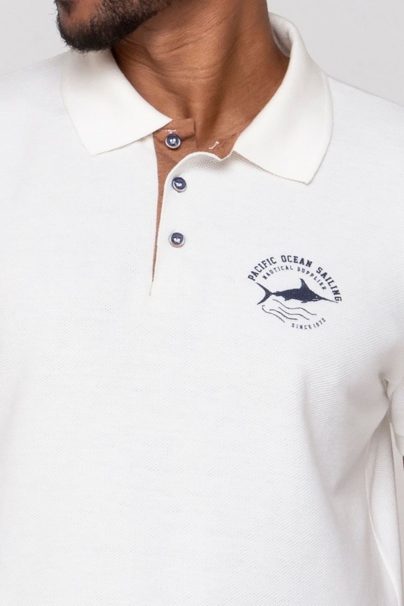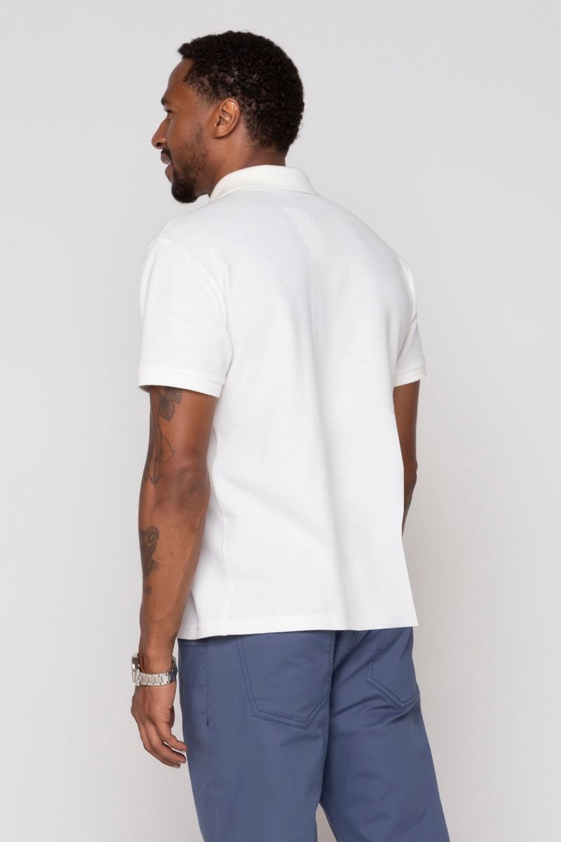 Polo Masculina Casual em Malha com Bordado Branca