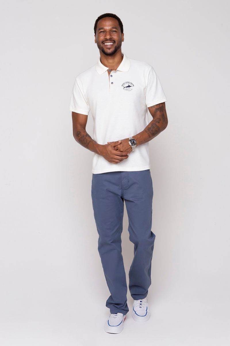 Camisa polo masculina, modelagem básica, confeccionada em malha, um tecido leve e confortável. A peça possui gola dobrável com fechamento por botões, estampa bordada, manga curta e caimento reto.