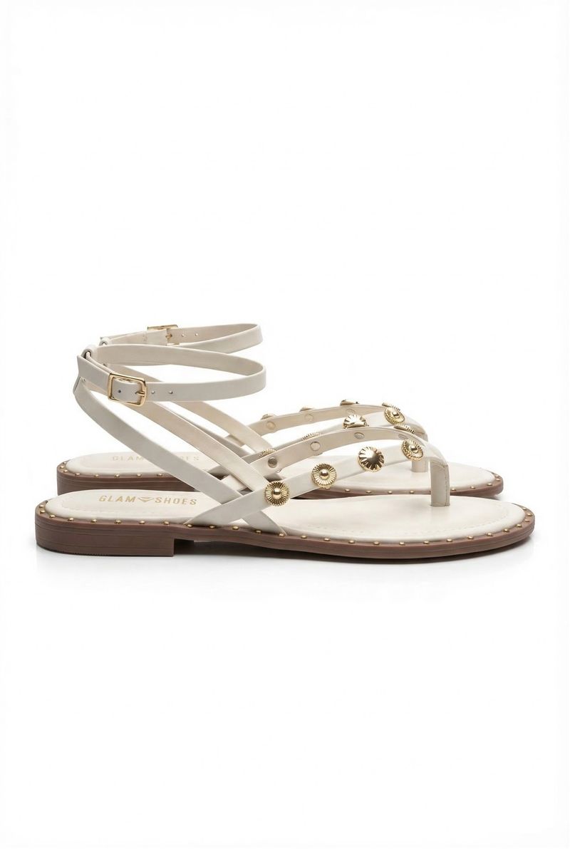 A Rasteira Gladiadora Off White Caedu redefine a moda com design elegante e tachas douradas. Confeccionada em borracha, oferece conforto e estilo marcante. Perfeita para quem busca glamour em roupas casuais, esta rasteira gladiadora é essencial.