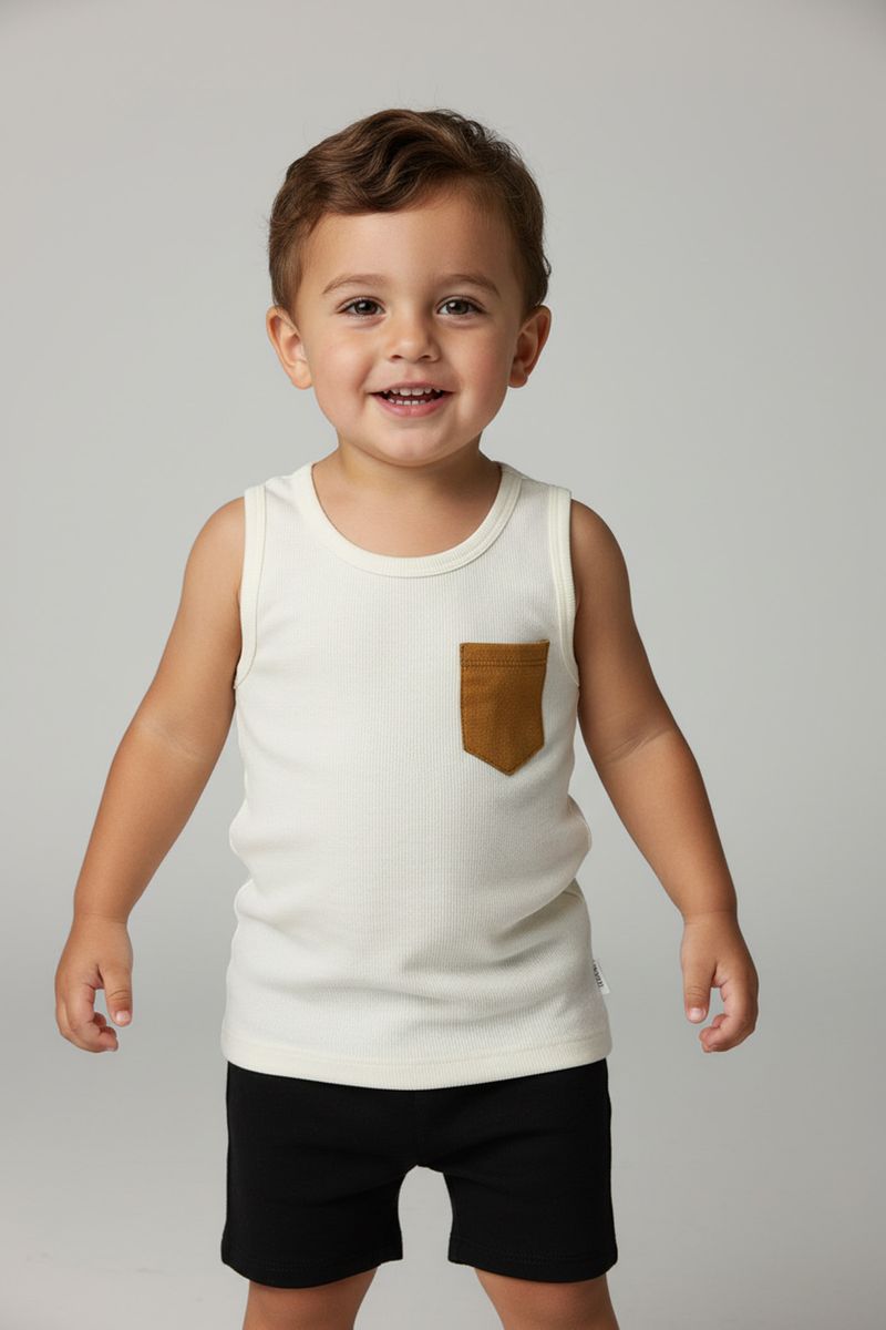 A Regata Infantil Menino Canelada Off White Caedu oferece conforto e estilo para o dia a dia. Com tecido canelado e bolsinho suede, esta roupa infantil é essencial na moda infantil Caedu para um visual moderno e cheio de personalidade.