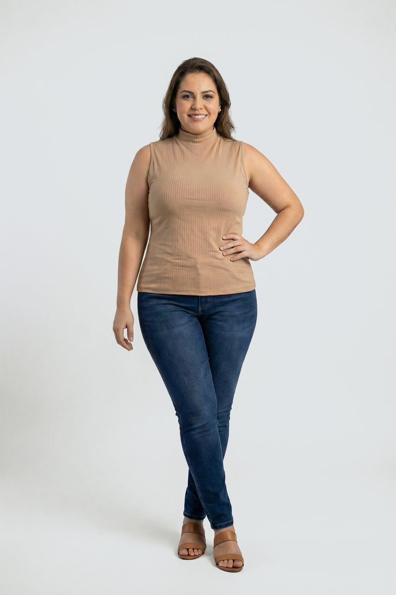 VestuárioFemininoBlusas e CamisetasRegata fpm cas ribana gola alta bege bege escuro