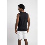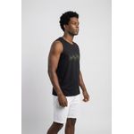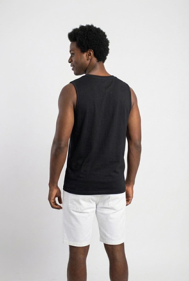 Combine sua regata preta com bermudas esportivas para a academia ou jeans para um visual casual. Adicione um tênis moderno para completar o look despojado. Para um toque extra de estilo, use com uma jaqueta leve aberta em dias mais frescos, criando um visual urbano e contemporâneo.
