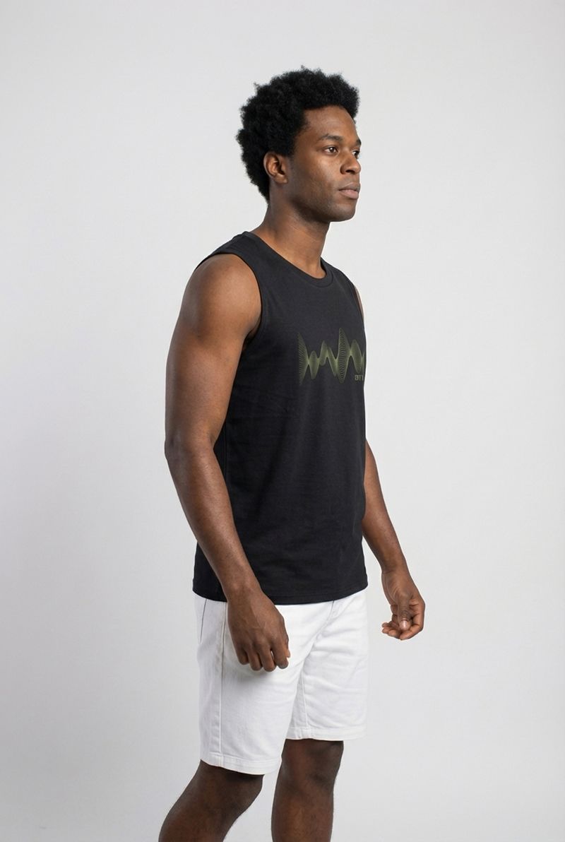 Regata Masculina Caedu Preta com Silk Ondas Gráficas Verdes