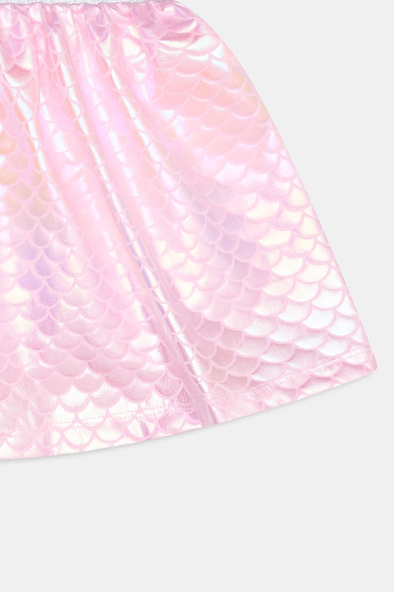 Desperte a magia com a Saia Infantil Sereia Rosa Claro Caedu, perfeita para as pequenas sonhadoras! Confeccionada em tule com efeito iridescente de escamas, esta roupa vibrante oferece conforto e um toque lúdico. Um item de moda infantil que garante estilo e diversão em cada movimento.