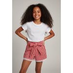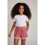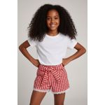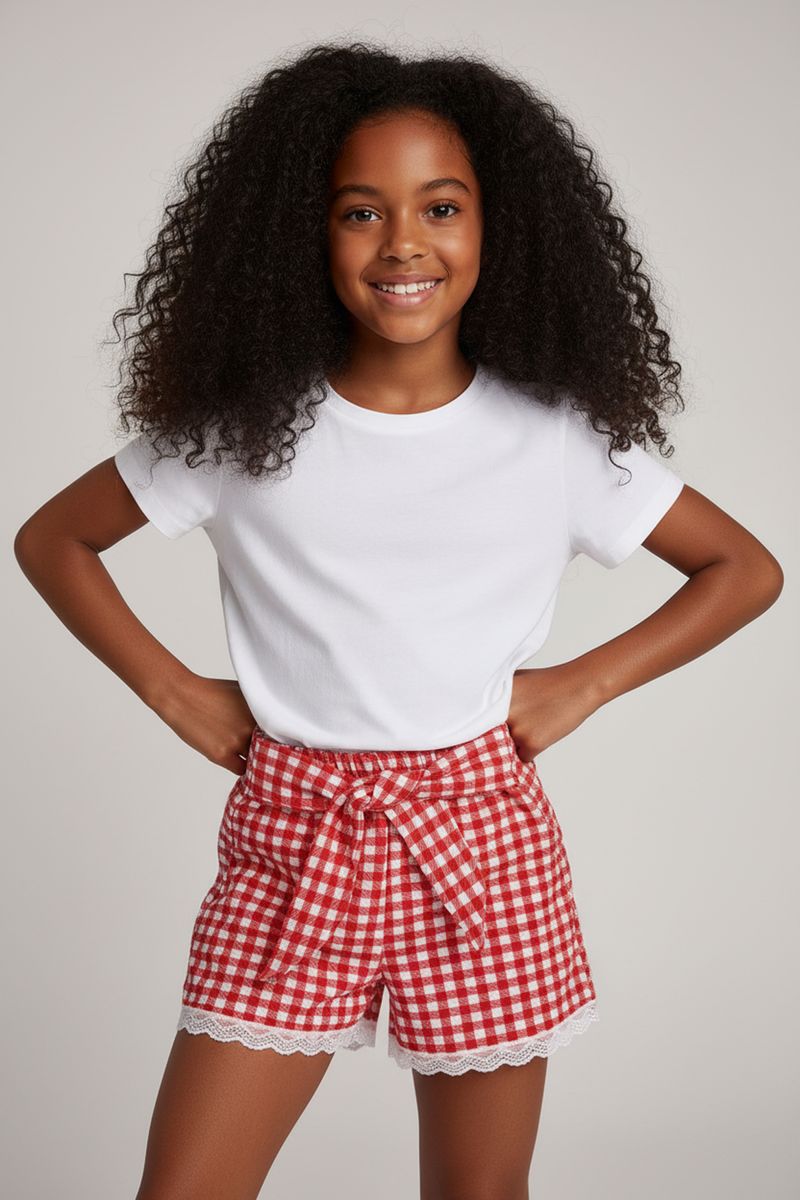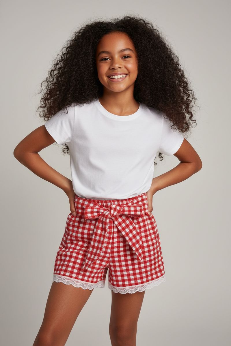 O Shorts Infantil Vichy Vermelho Caedu é a escolha perfeita para um look charmoso e cheio de estilo. Com estampa xadrez vichy, laço na cintura e delicada barra de renda, oferece conforto e um toque de elegância para as pequenas fashionistas.