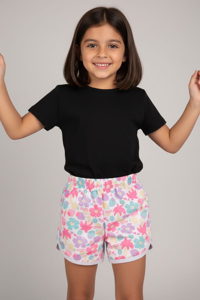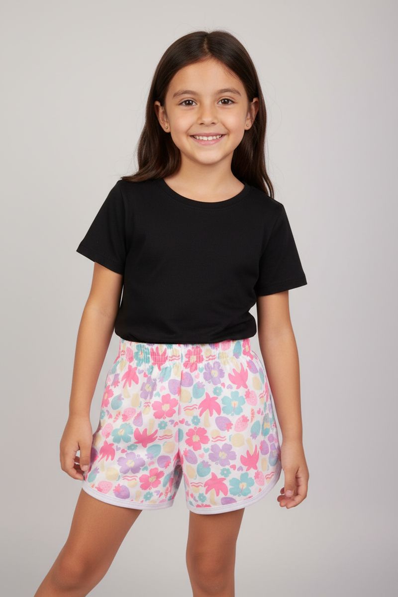 Combine o Shorts Infantil Floral Vibrante com uma blusa lisa preta ou branca para um look equilibrado. Para um toque de cor, opte por regatas em tons que harmonizem com a estampa. Complete com sandálias confortáveis ou tênis casuais para um visual despojado e cheio de energia.