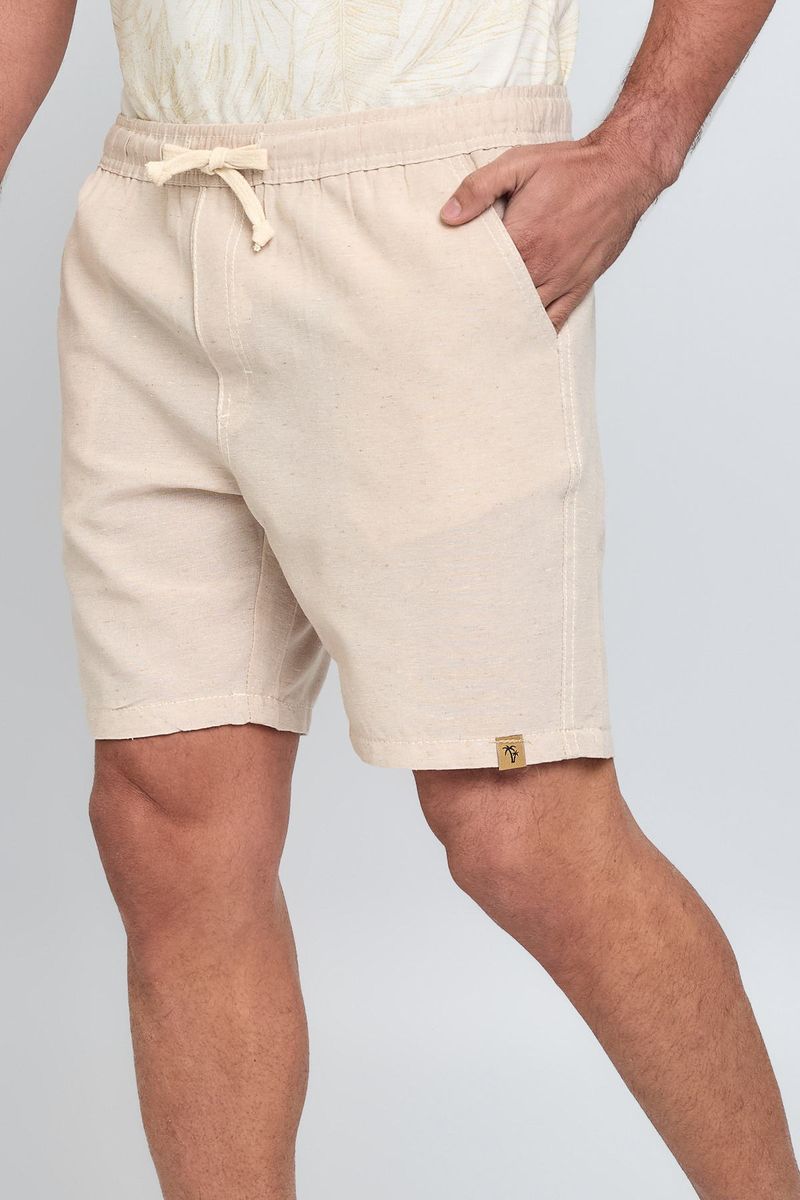 Shorts bege caqui com corte casual e tecido leve, perfeito para o verão.