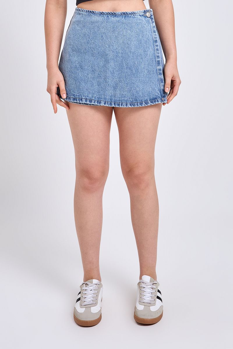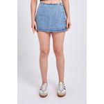 Realce seu estilo com o Shorts Saia Jeans Feminino Azul Stone da Caedu. Confeccionado em denim de alta qualidade com 97% algodão e 3% elastano, oferece conforto e caimento perfeito. Seu design de saia envelopada proporciona um toque moderno e versátil para suas roupas.