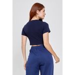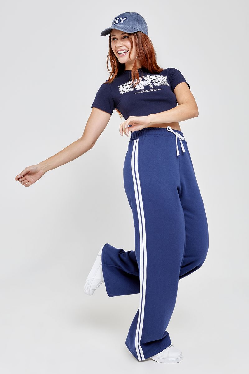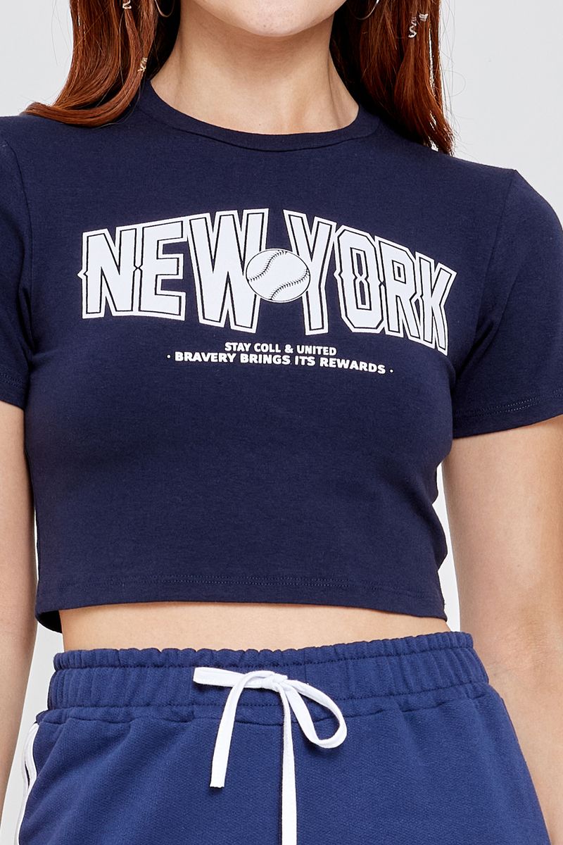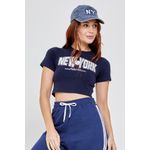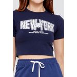 Destaque-se com o Top Feminino New York Azul Escuro Caedu. Conforto e estilo em algodão e elastano. Este top cropped com estampa New York é ideal para um visual moderno e versátil.