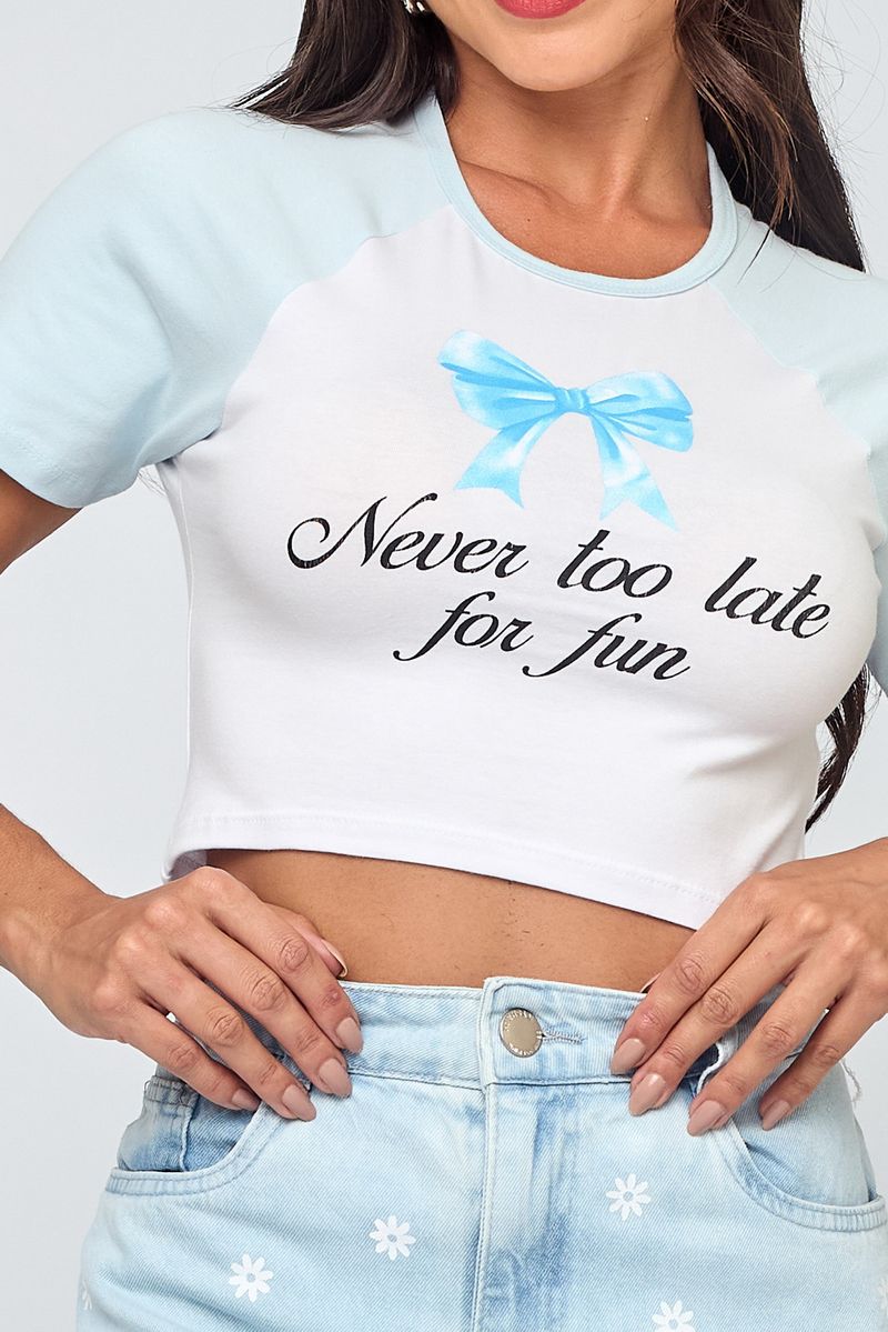 Realce sua beleza com o Top Feminino Raglan com Laço Branco Caedu. Em cotton (96% algodão, 4% elastano), oferece conforto e caimento perfeito. O laço frontal e manga raglan adicionam charme, ideal para moda.