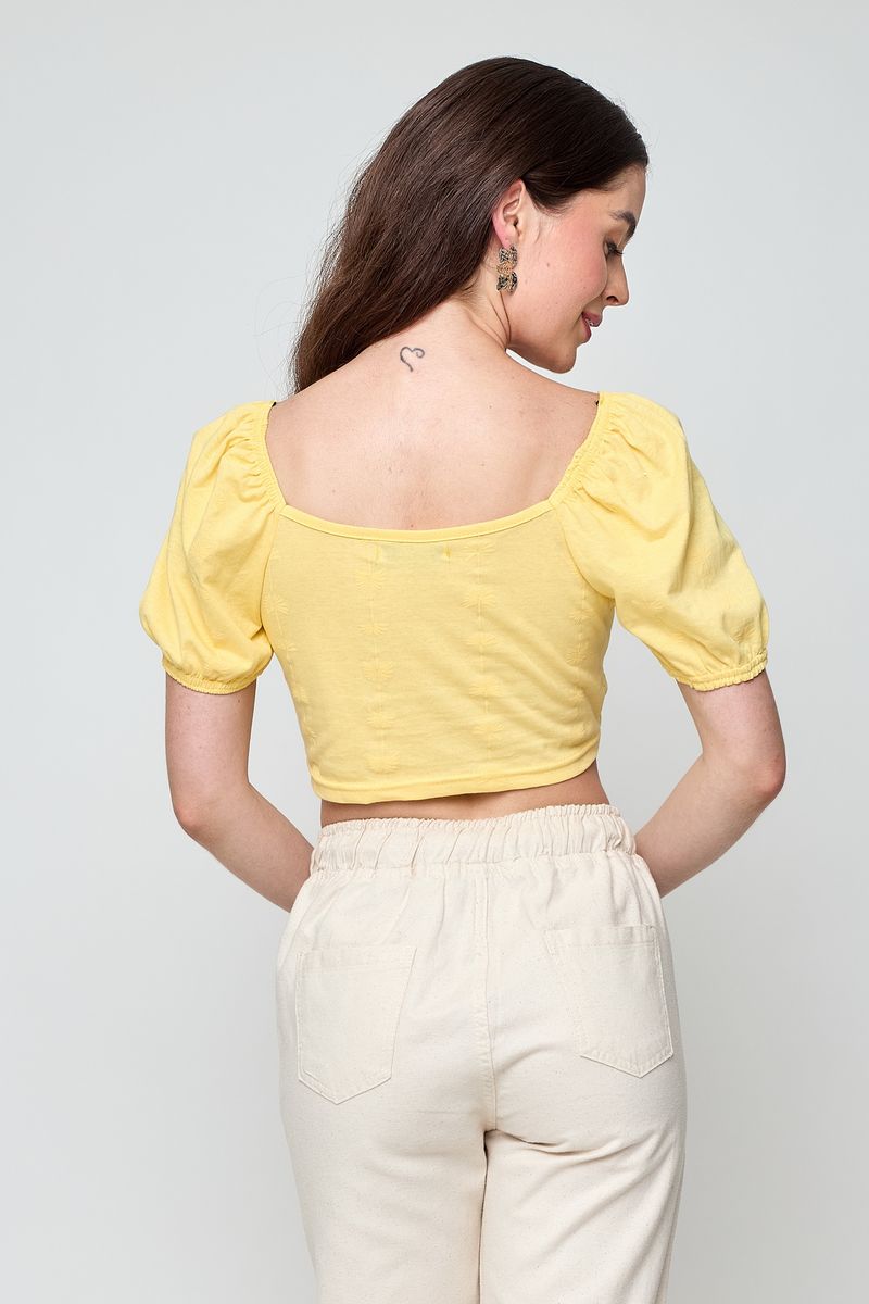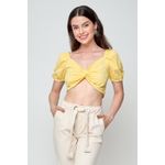 O Top Feminino Romântico Amarelo Caedu, roupa para looks delicados e charmosos. Estilo romântico e cor vibrante, conforto e moda. Peça Caedu versátil para inspirar seu visual com bom preço.