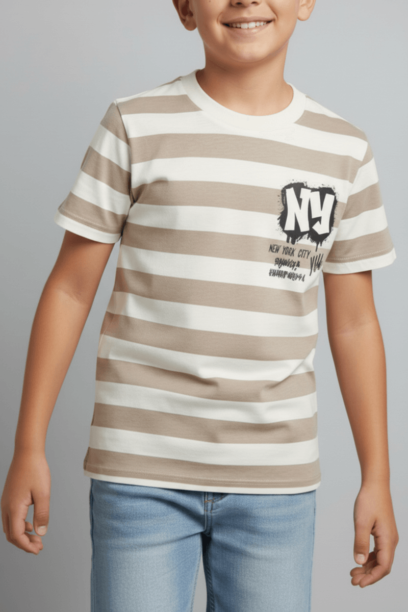 A Camiseta Infantil Masculina Listrada NY Algodão Gola Redonda Caedu é ideal para o dia a dia dos meninos. Perfeita para passeios, encontros casuais ou para relaxar em casa com estilo, garantindo conforto.