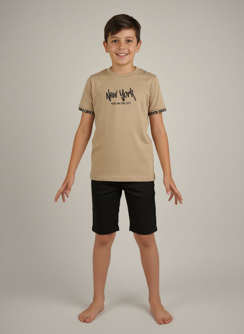 Combine esta camiseta urbana com um jeans escuro e tênis confortáveis para um visual despojado. Para um toque extra de estilo, adicione um boné e uma jaqueta leve, criando um look completo e cheio de personalidade para seu menino.