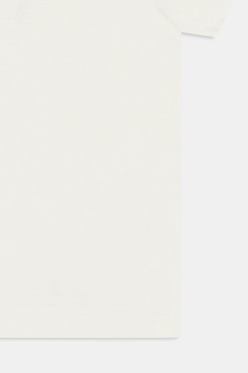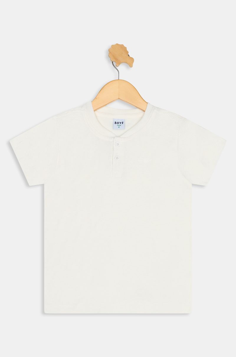 Conforto e estilo com o Top Malha Infantil Caedu. Feito em 100% algodão de meia malha, oferece toque suave. Design off-white com gola carcela e manga curta, ideal para o dia a dia. Qualidade Caedu.