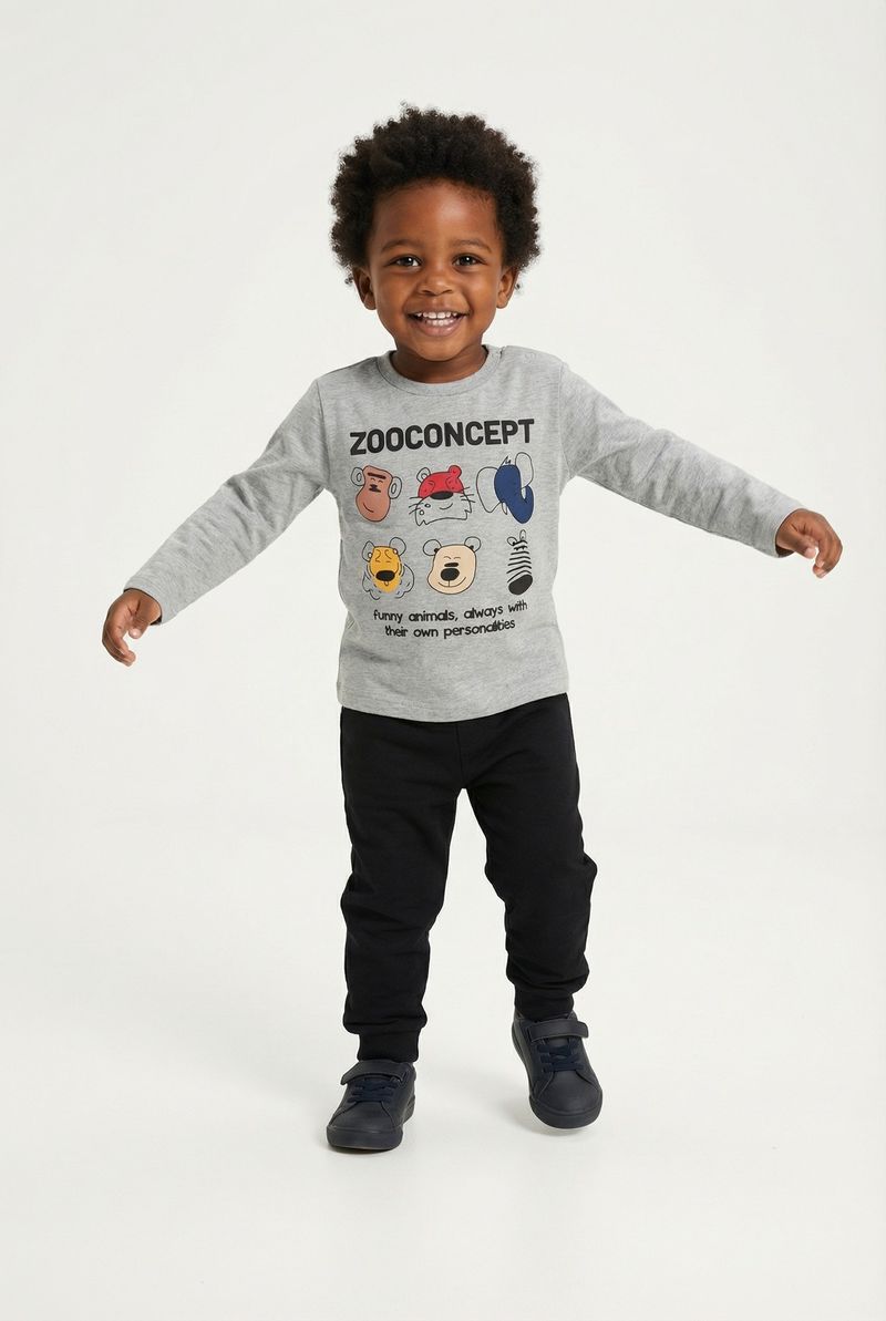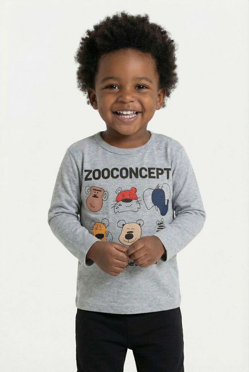 A Camiseta Infantil Caedu ZooConcept 'Funny Animals' em cinza mescla oferece conforto e estilo para os pequenos. Com estampa vibrante de animais e frase divertida, é a roupa infantil perfeita para o dia a dia, garantindo alegria e personalidade.