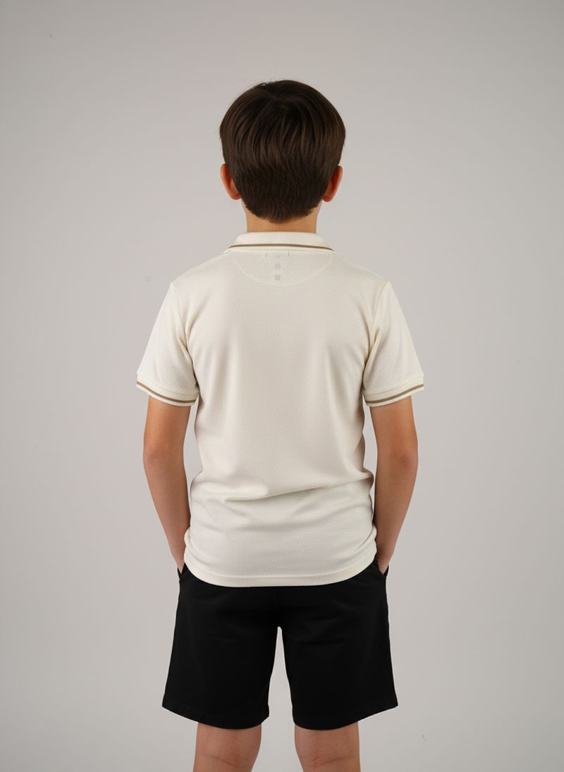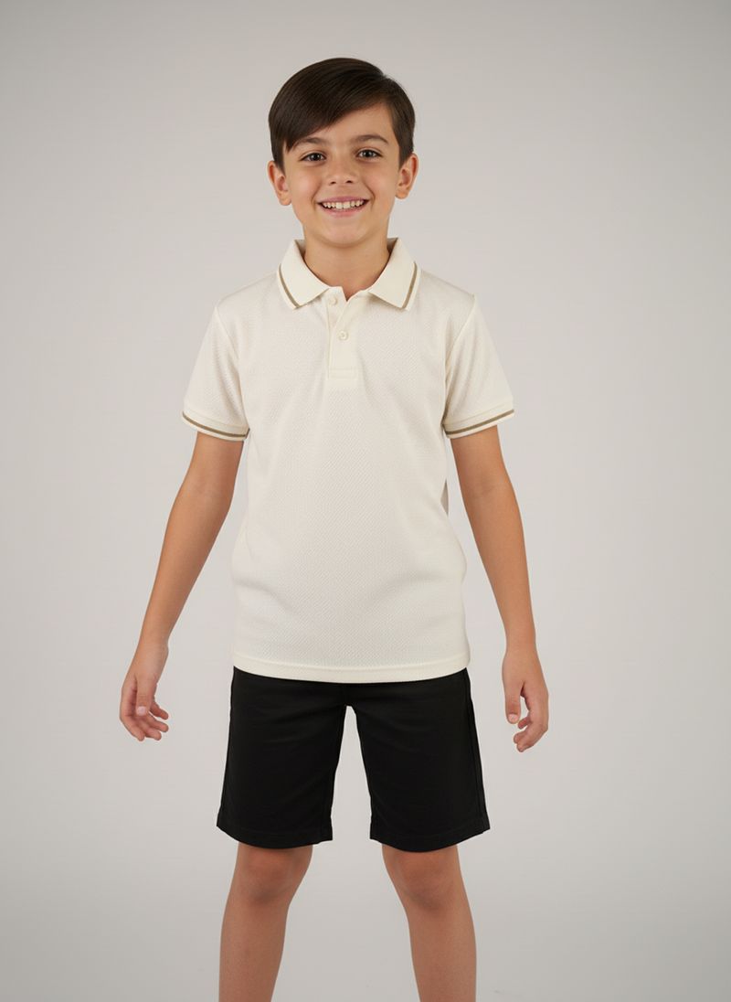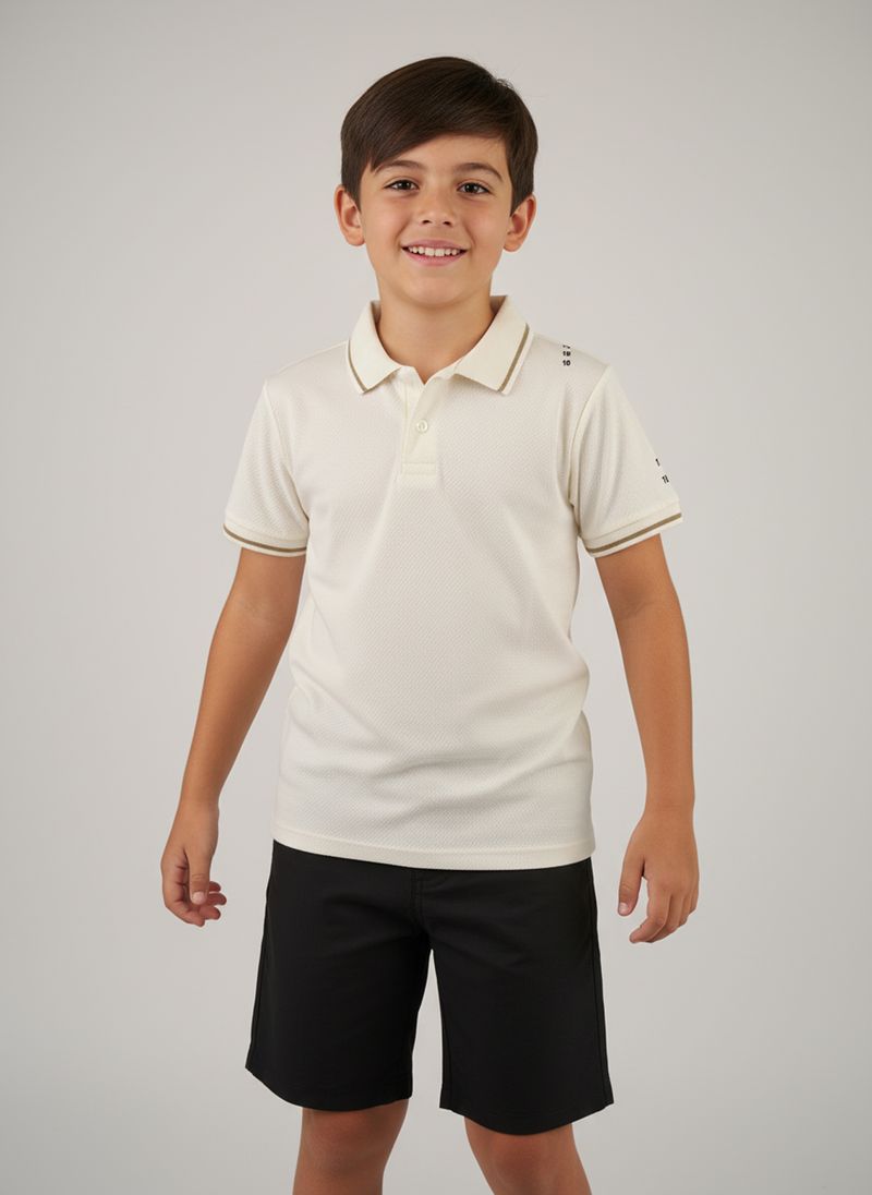 A Camiseta Polo Infantil Off White Caedu oferece conforto e estilo para os pequenos. Confeccionada em 100% algodão e material principal meia malha, proporciona toque suave e liberdade. Seu design em malha piquet com listras finas adiciona um charme único, ideal para compor looks modernos e cheios de personalidade na moda infantil.