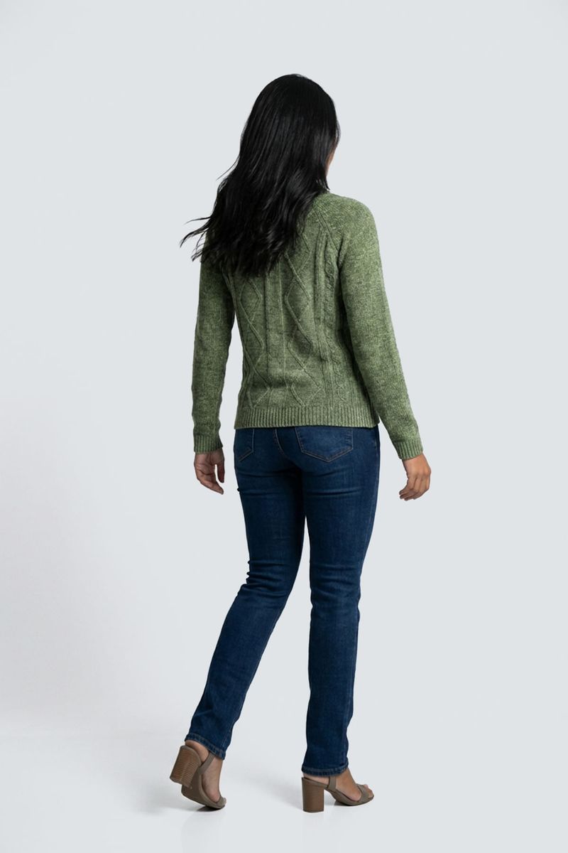 Suéter Feminino Chenille Verde Oliva Aconchegante com Tranças Caedu