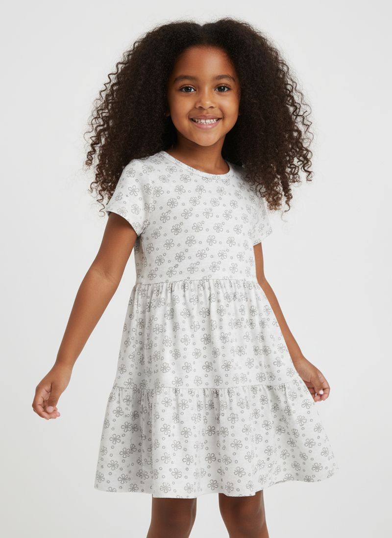 O Vestido Infantil Caedu é a escolha perfeita para um look charmoso e confortável. Confeccionado em meia malha, este vestido branco com delicadas estampas de florzinhas e charmosos babados oferece um caimento fluido e casual, ideal para as pequenas exploradoras.