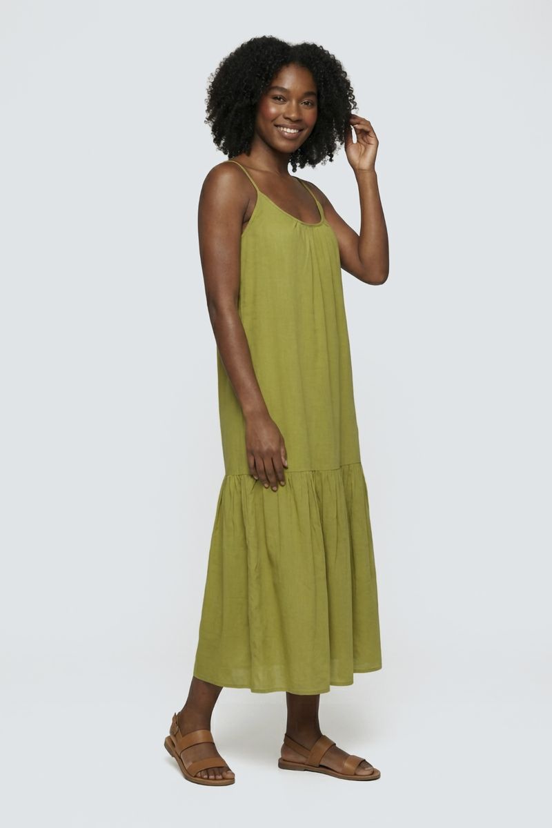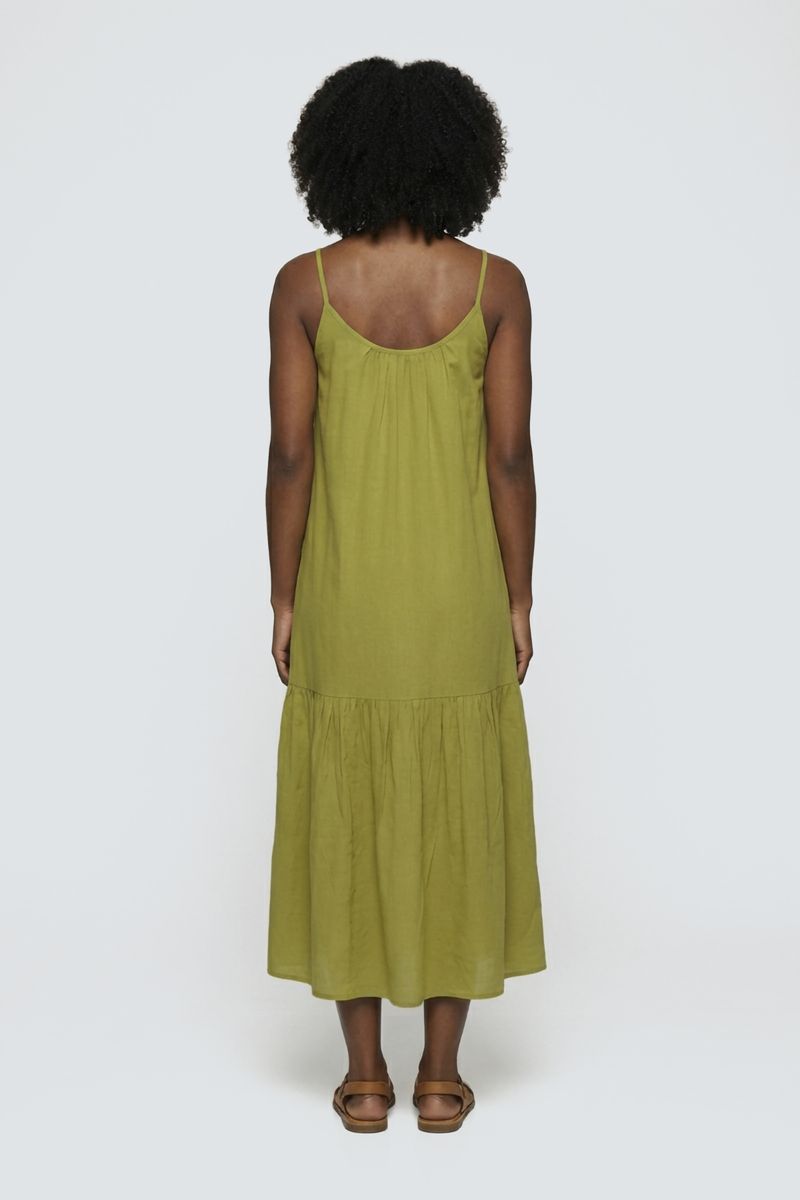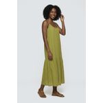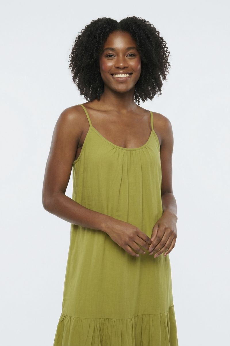 Vestido Midi Fluido Caedu de Viscose com Alcinhas e Babados Verde Claro